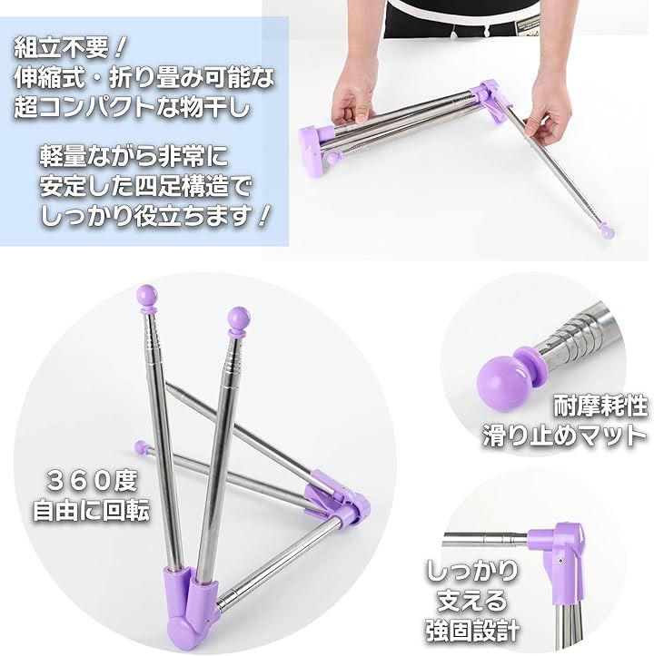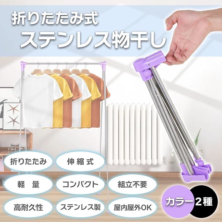 室内物干し 洗濯物干し スタンド ステンレス鋼 折りたたみ 伸縮式 コンパクト 収納便利 布団干し ハンガー 台 軽量 組み立て不要 屋内 屋外 ベランダ 旅行 アウトドア