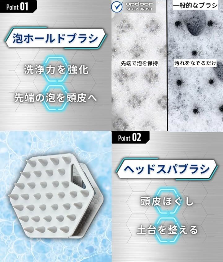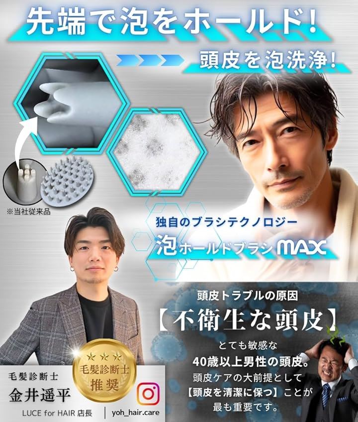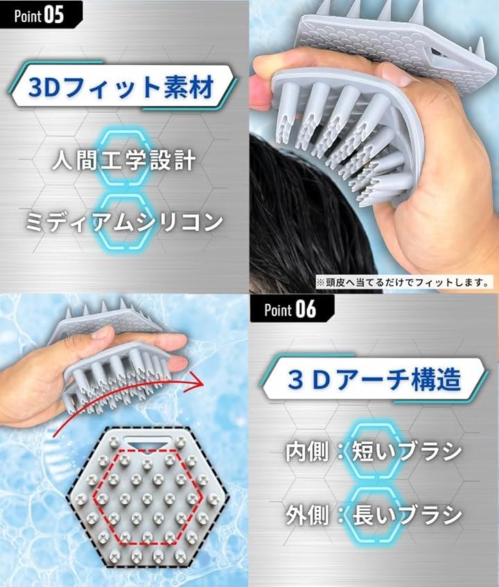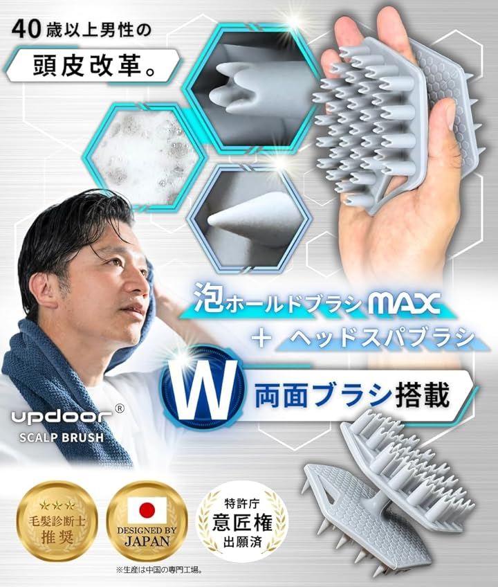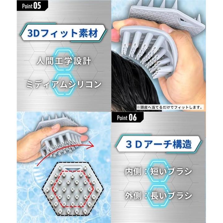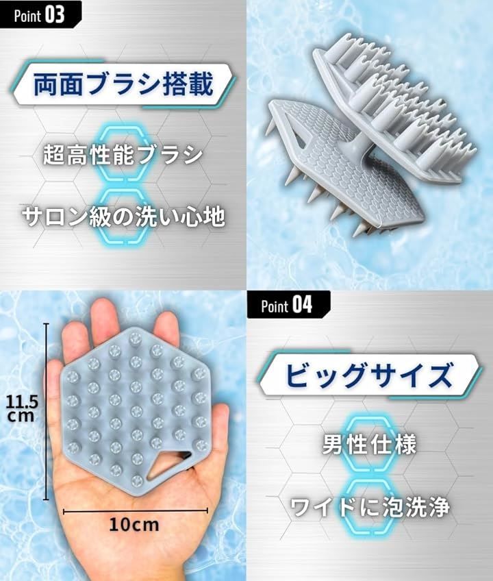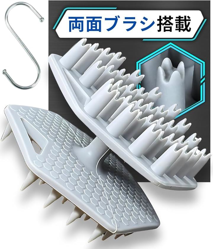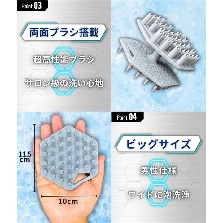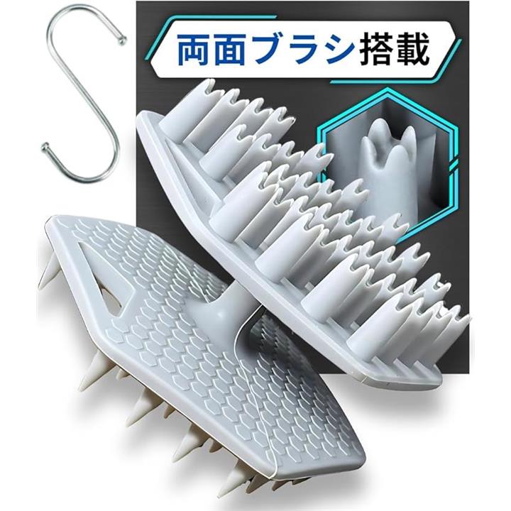 両面ブラシ搭載 頭皮ブラシ シャンプーブラシ メンズ スカルプブラシ 毛髪診断士推奨 ヘッドブラシ 頭皮マッサージ グレー