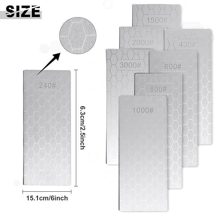 8枚セット ダイヤモンド砥石セット 面直し 仕上げ 両面 仕上げ砥石 ダイヤモンドラッピングプレート 修正砥石 シャープナー 刃物研磨 包丁研ぎ石 滑り止めベース