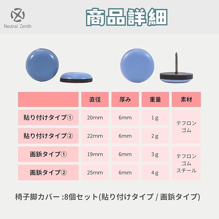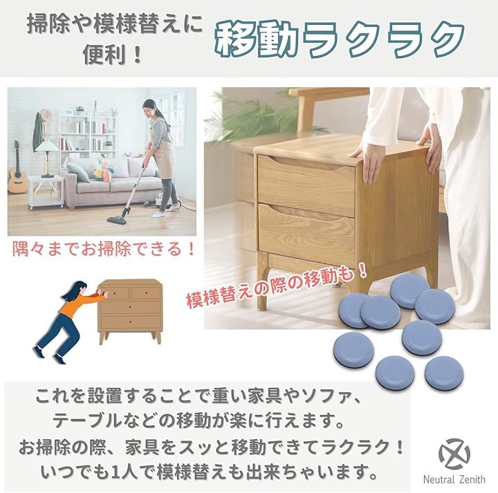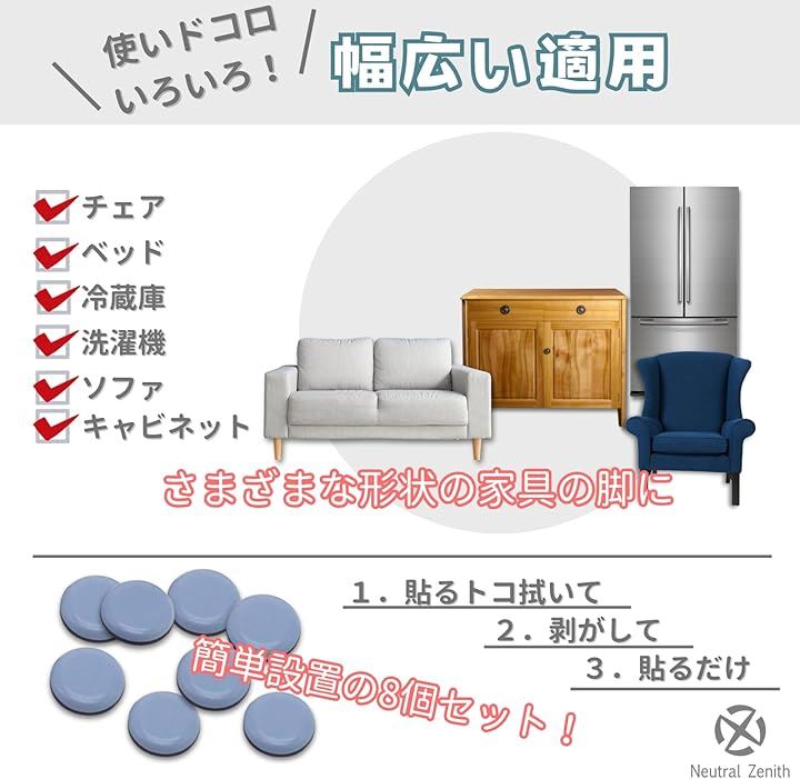 椅子脚カバー 滑る 移動楽々 家具スライダー 丸型 防音 傷防止 床保護 家具移動パッド 椅子脚キャップ 8個セット
