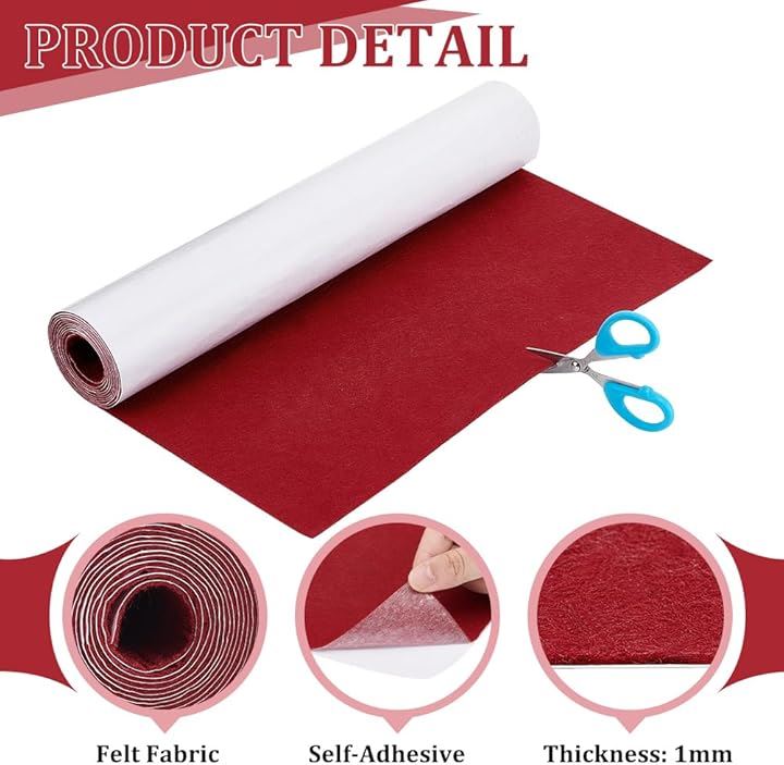 フェルトシート 厚さ1mm フェルト生地シート 粘着性あり自己接着フェルト生地 フェルトマット ジュエリー引き出しボックスライナー クラフト 家具保護シート
