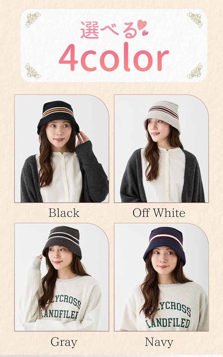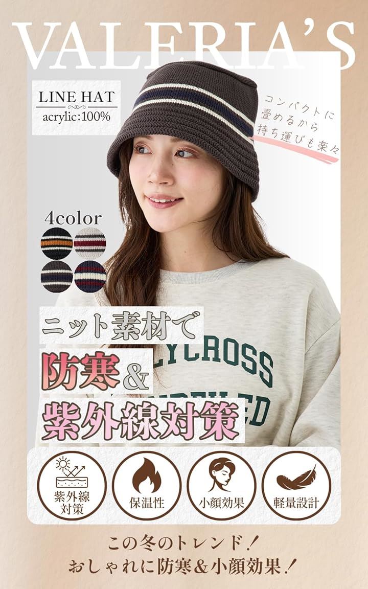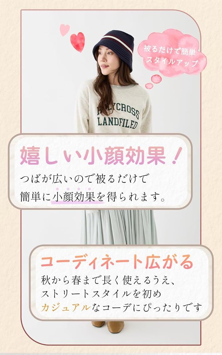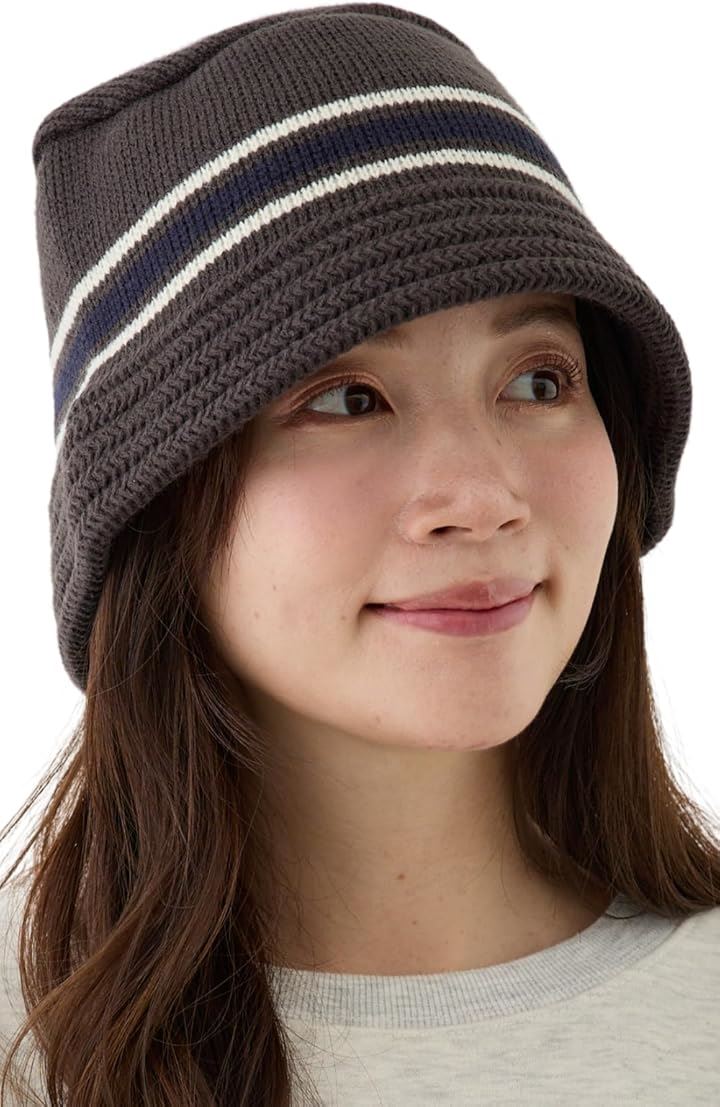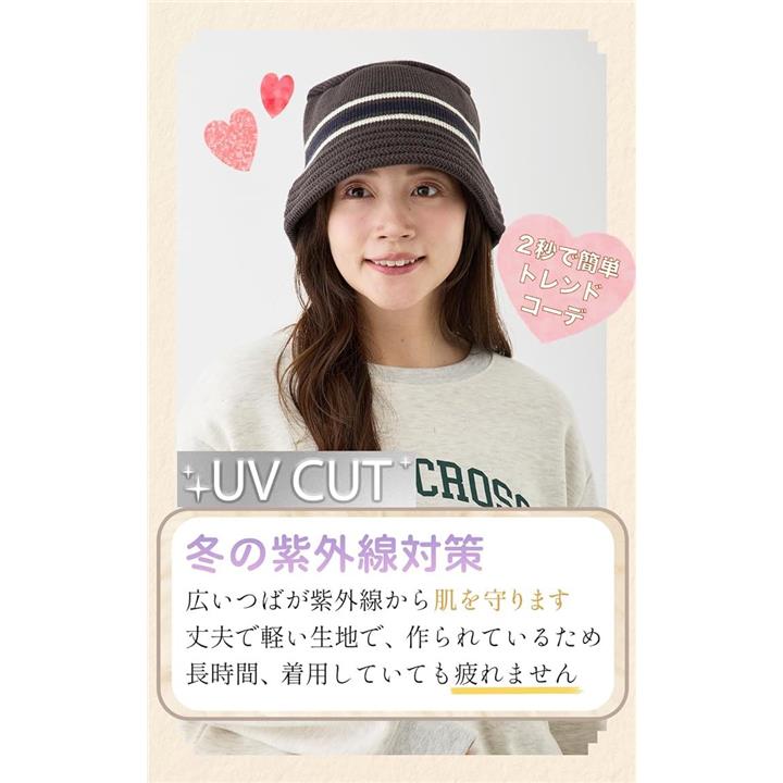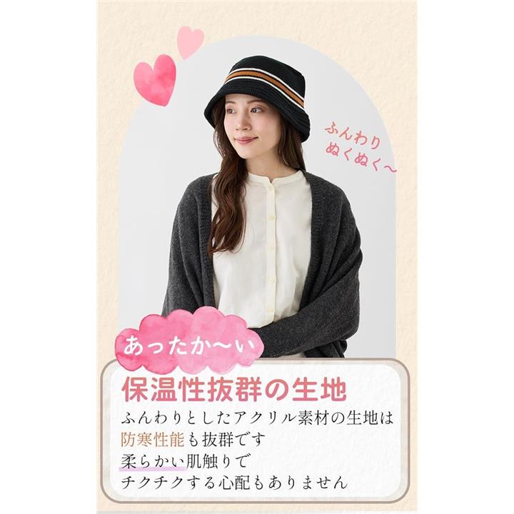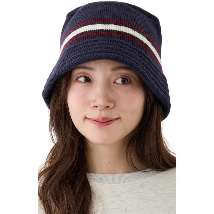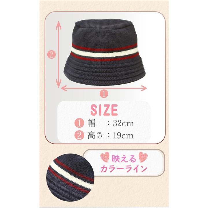 ラインボーダー ニットバケットハット レディース 柔らかい素材 軽量 オールシーズン対応