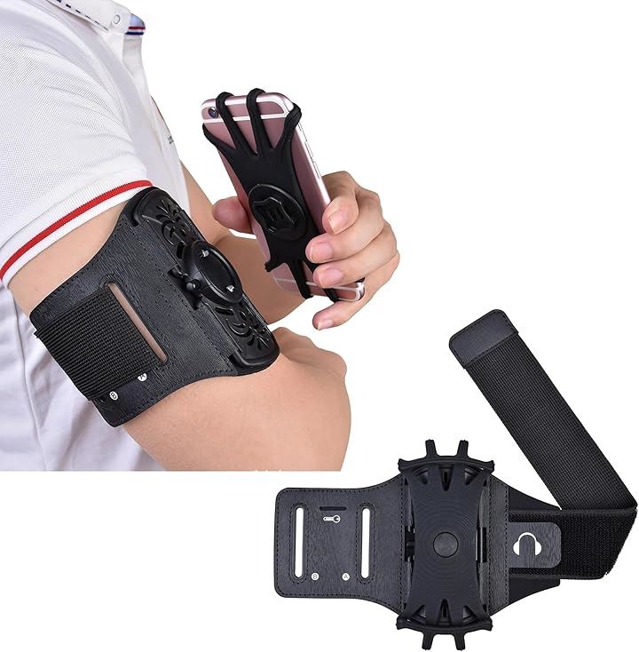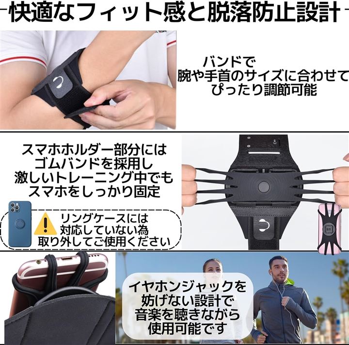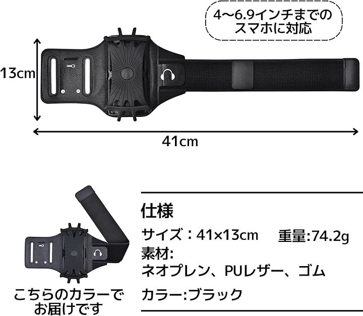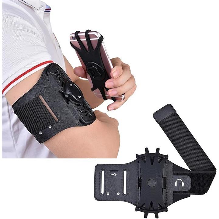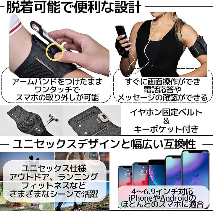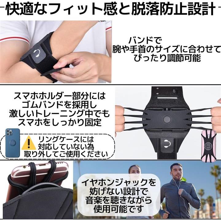 互換品 アームバンド ランニング スマホ 脱着可能 脱落防止 360度回転 ユニセックス iphone android 4-6.5インチ対応 ブラック
