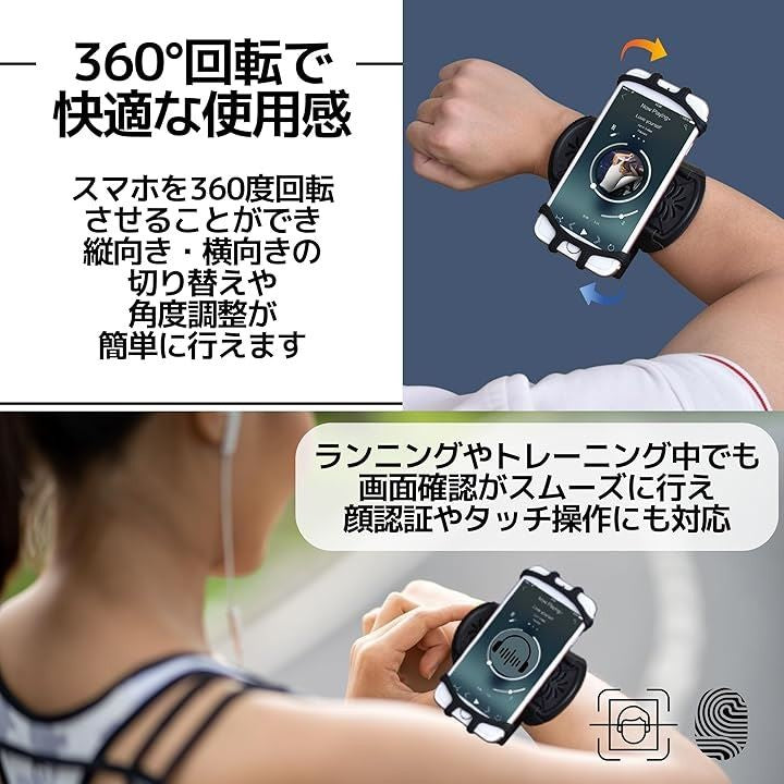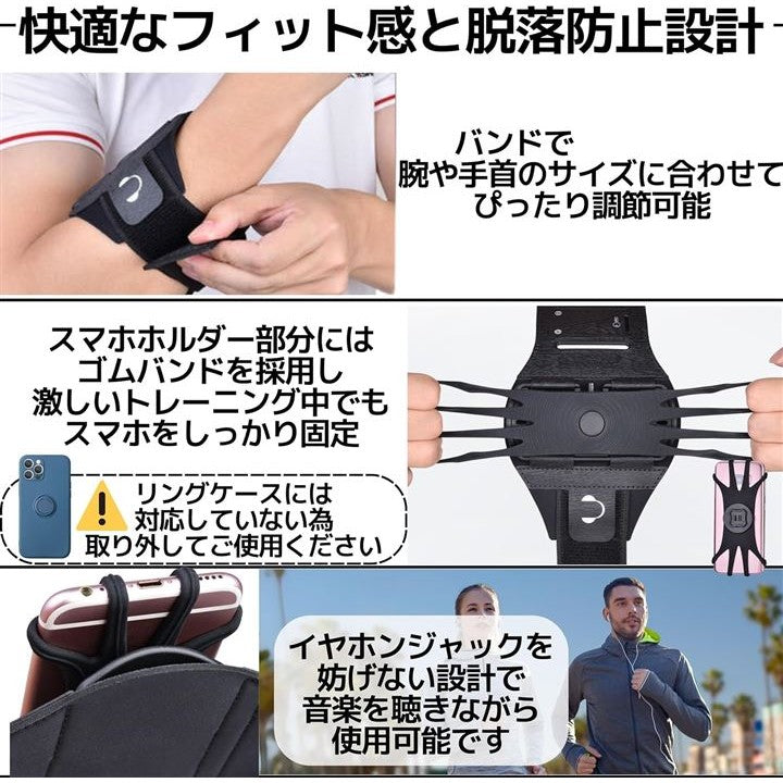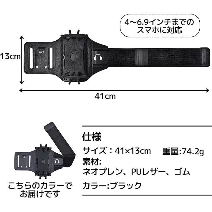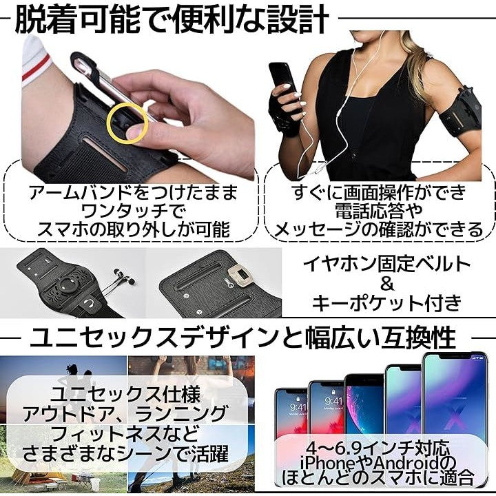 アームバンド ランニング スマホ 脱着可能 脱落防止 360度回転 ユニセックス iphone android 4-6.5インチ対応 ブラック