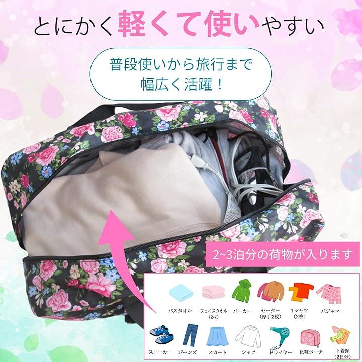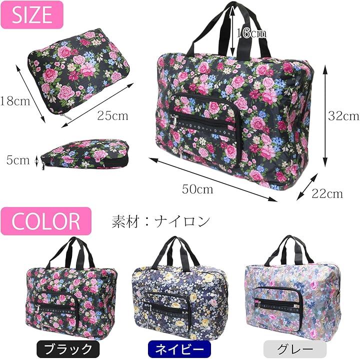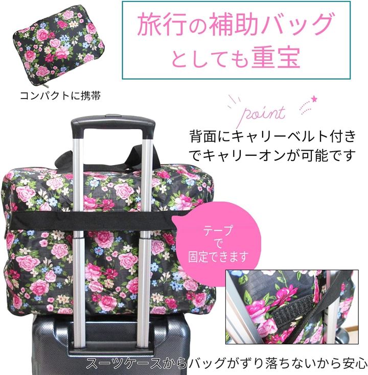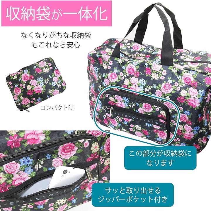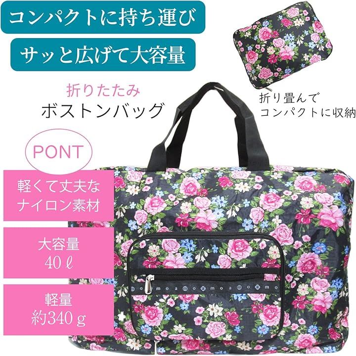 折りたたみ ボストンバッグ 花柄 レディース 大容量 大きいサイズ