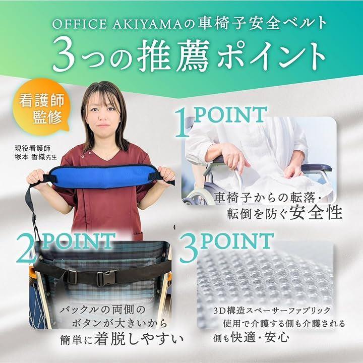 現役の看護師監修 車椅子 ベルト 車椅子ベルト 国内耐久性検査を実施3D構造スペンサーファブリックとメッシュ素材を使用し付け心地の良さと転落防止を実現OFFICEAKIYAMA