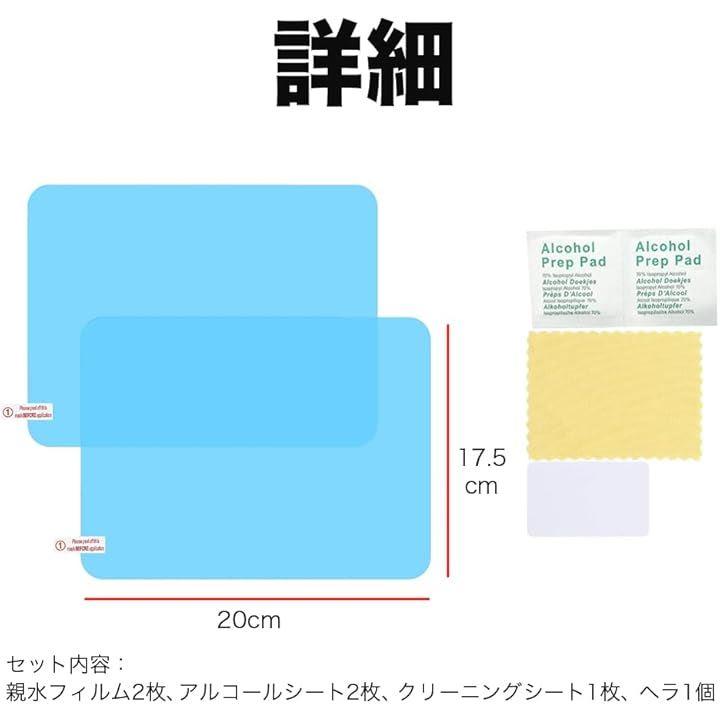 親水フィルム カーミラー サイドガラス 2枚入り サイドフィルム カーフィルム サイドウィンドウ 防水 曇り止め 反射防止 汎用型