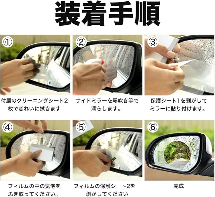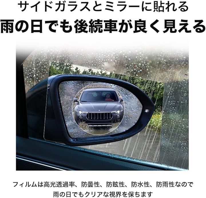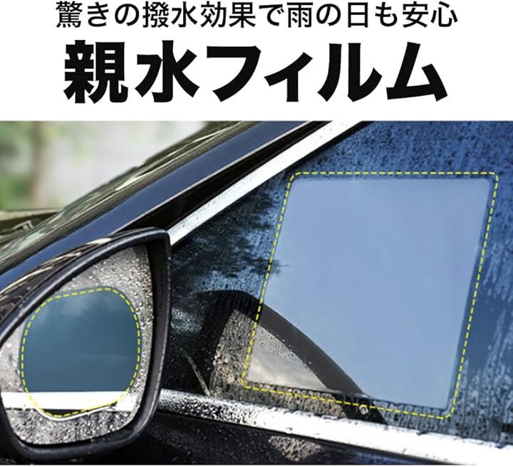 親水フィルム カーミラー サイドガラス 2枚入り サイドフィルム カーフィルム サイドウィンドウ 防水 曇り止め 反射防止 汎用型