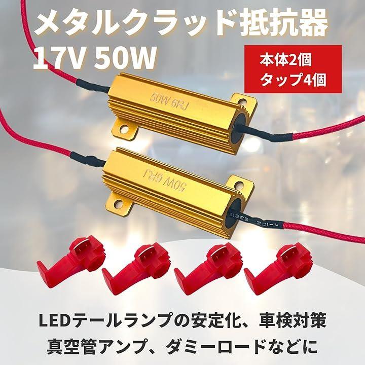 メタルクラッド 抵抗 17V 50W 6Ω 抵抗器 ハイフラ防止 ウインカー LED 高速点滅防止 エレクトロタップ 4個 本体 2個セット