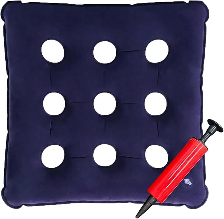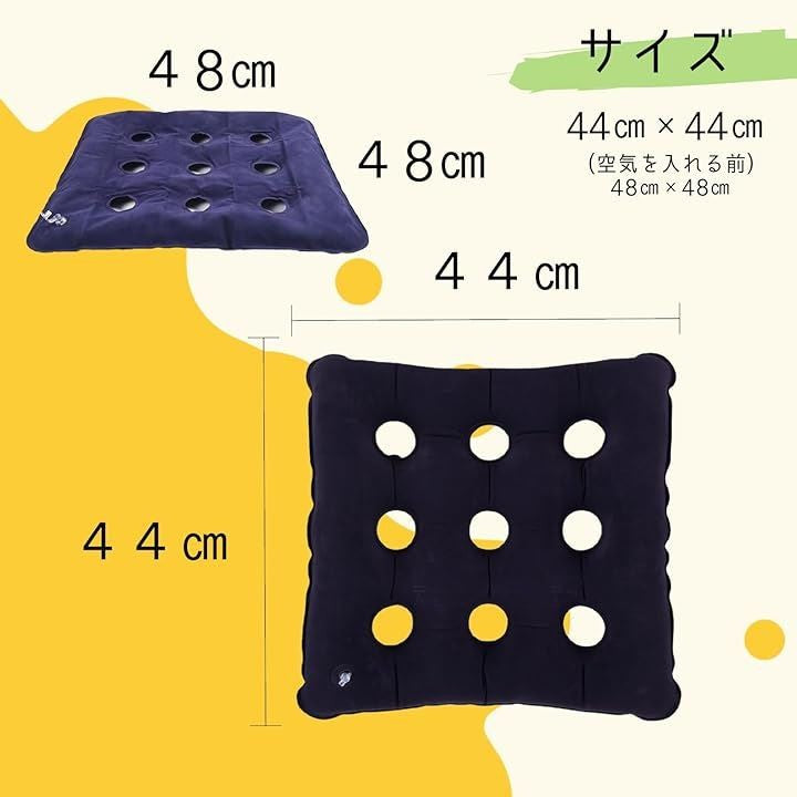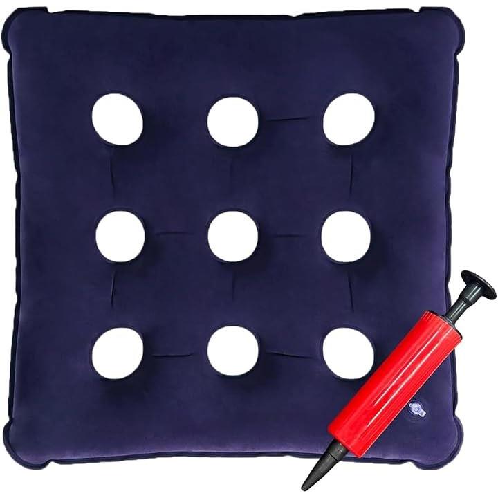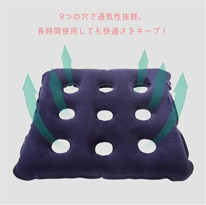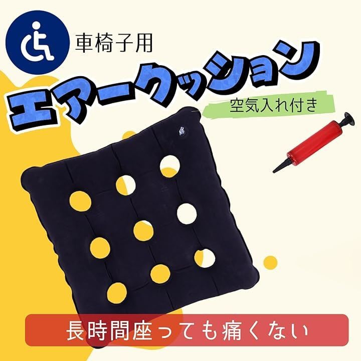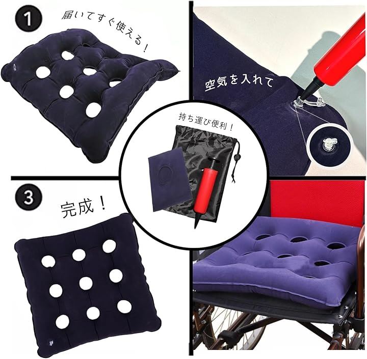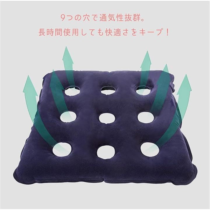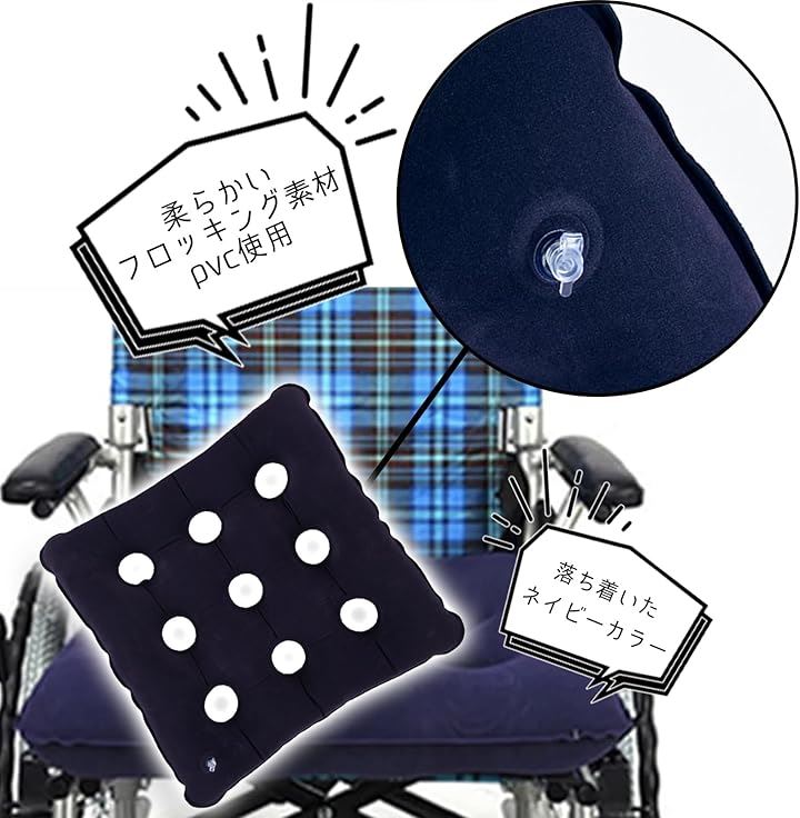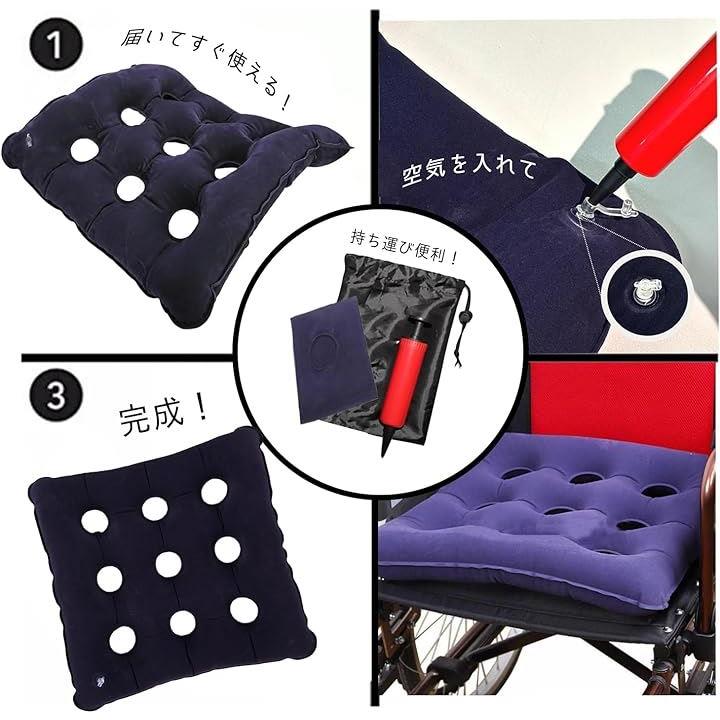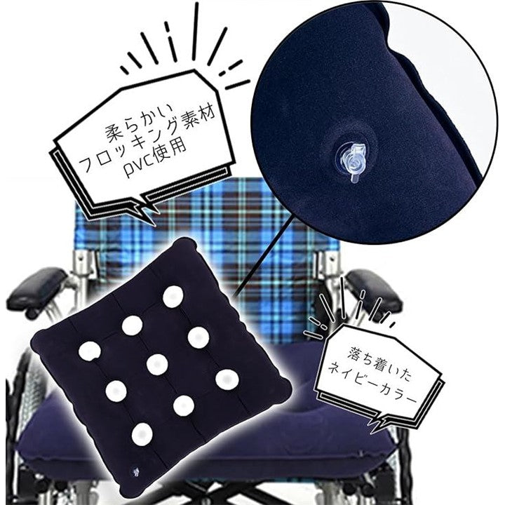 車椅子 エアークッション 高齢者 インフレータブルクッション 長時間 圧力分散 フロック加工 スクエアタイプ 空気入れ付き
