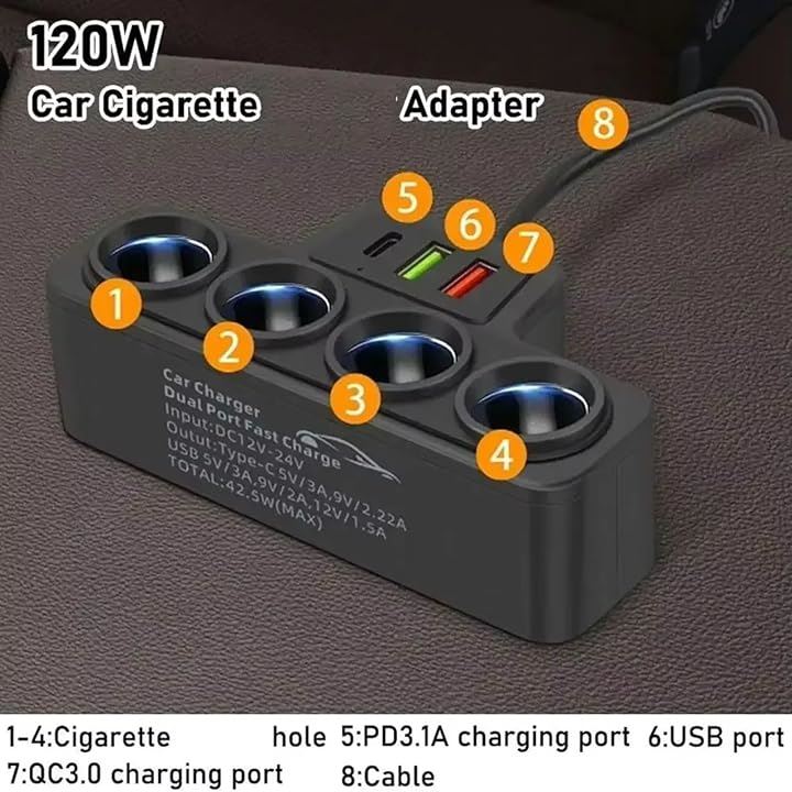 車載充電器 急速車載充電器 USB-C車載充電器 車の充電器 車の充電アダプター USBカーチャージャー 7in1 7台同時充電 Max120W ターSUV オフロード フォークリフト クレーン用 カー用品