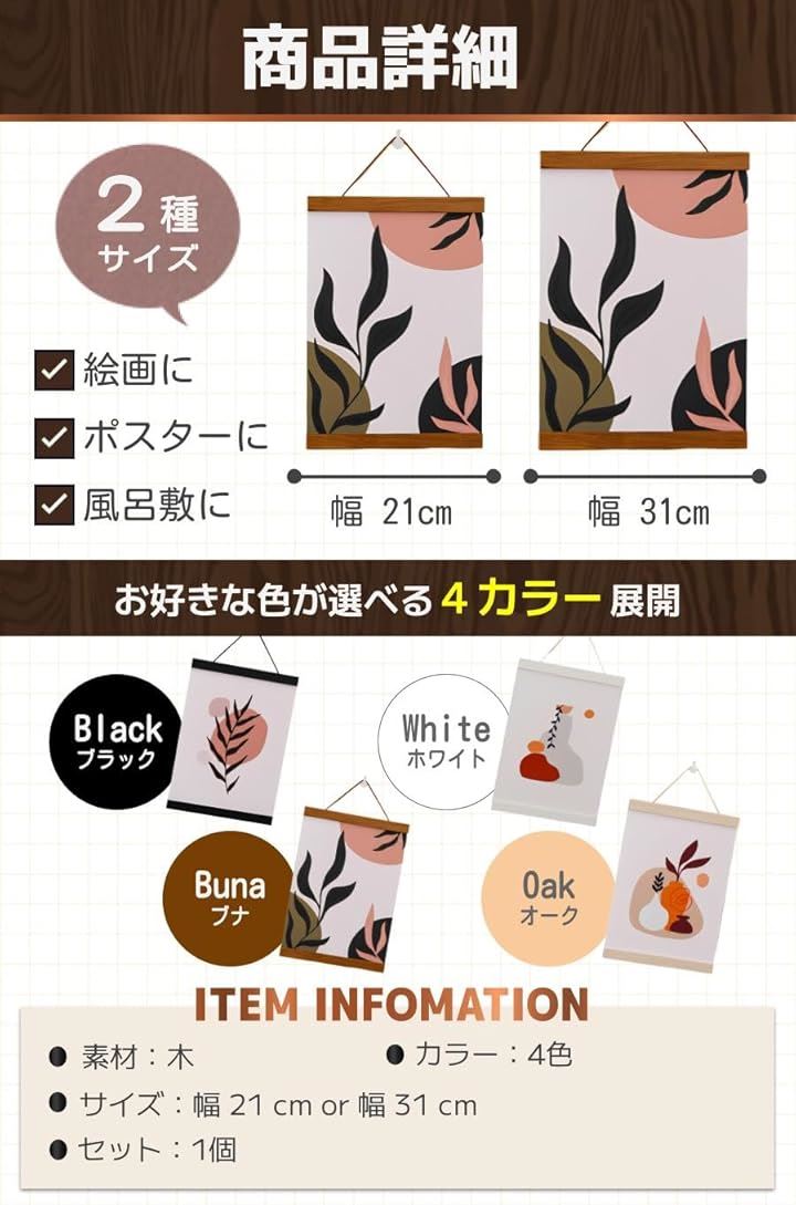 タペストリー棒 額縁 ポスターフレーム ポスターハンガー 壁掛け 絵を飾る