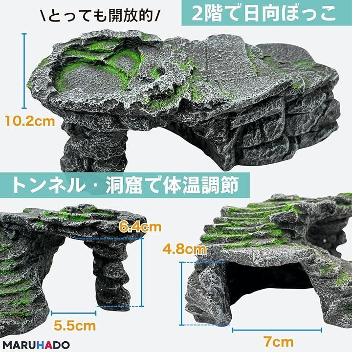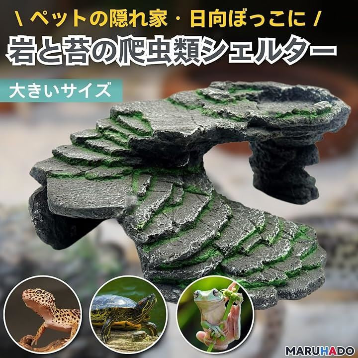 爬虫類 シェルター 隠れ家 洞窟 階段 テラリウム 苔 浮島 カメ レオパ カエル トカゲ カメレオン ヤモリ カニ 階段付き隠れ家
