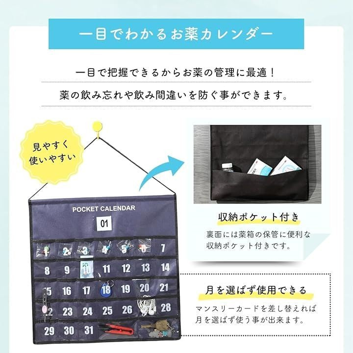 互換品お薬カレンダー 壁掛け プロの薬剤師が選んだ一品 1ヶ月 月間 ポケット付き 1か月分 ウォールポケット 服薬管理