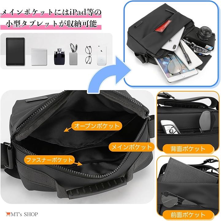 ショルダーバッグ メンズ コンパクト 軽量 防水 多機能 タブレット収納 斜めがけ 肩掛け 手提げ 通勤 SH406