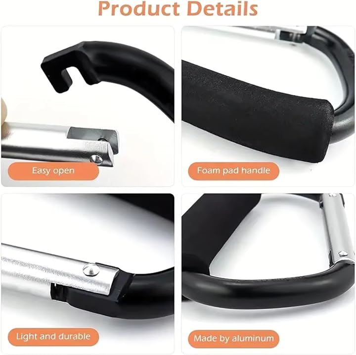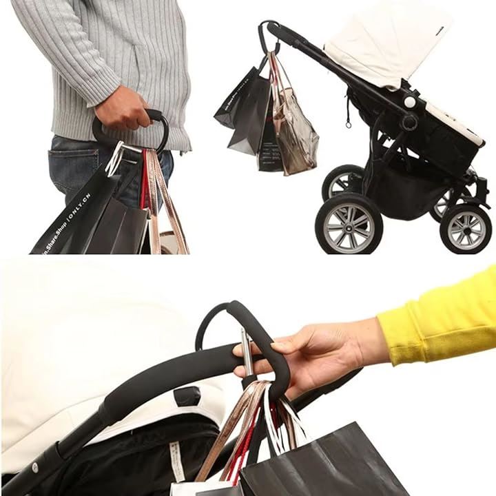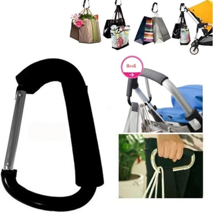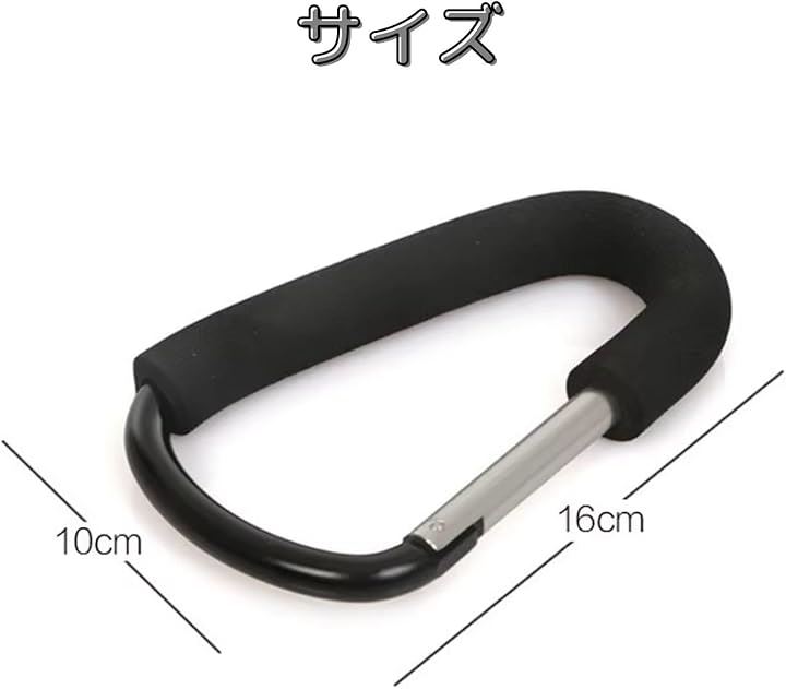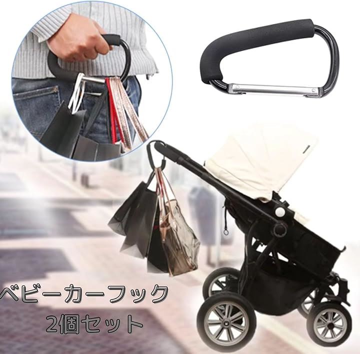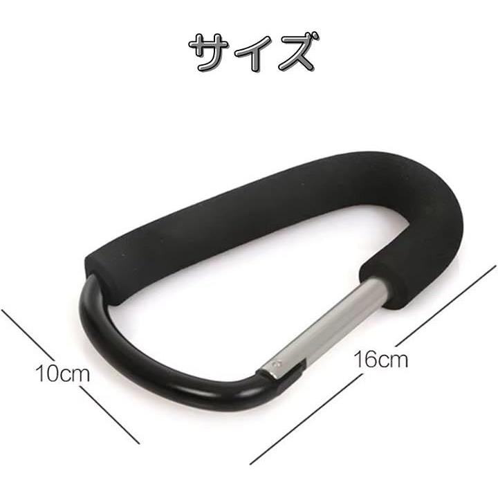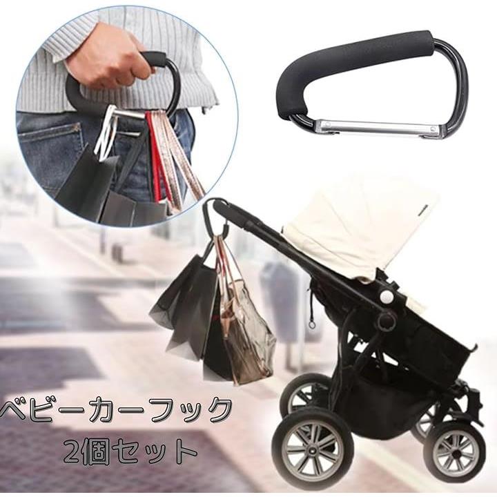 ベビーカー フック 2個 カラビナ アウトドア キャンプ マルチフック 荷物フック 滑り止め アルミ合金 軽量 大きいサイズ ベビーカー/バギー/自転車に対応