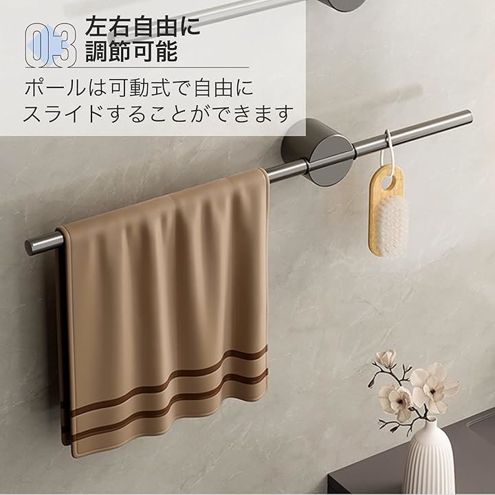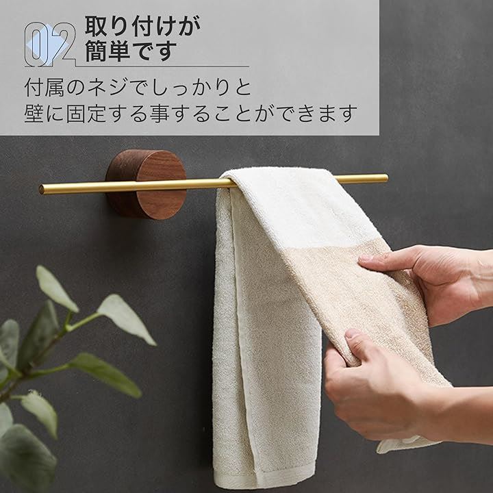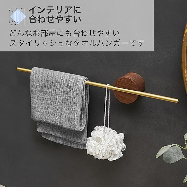 タオル掛け 洗面所 タオルホルダー 省スペース 木製 壁 おしゃれ 穴開けない 40 cm