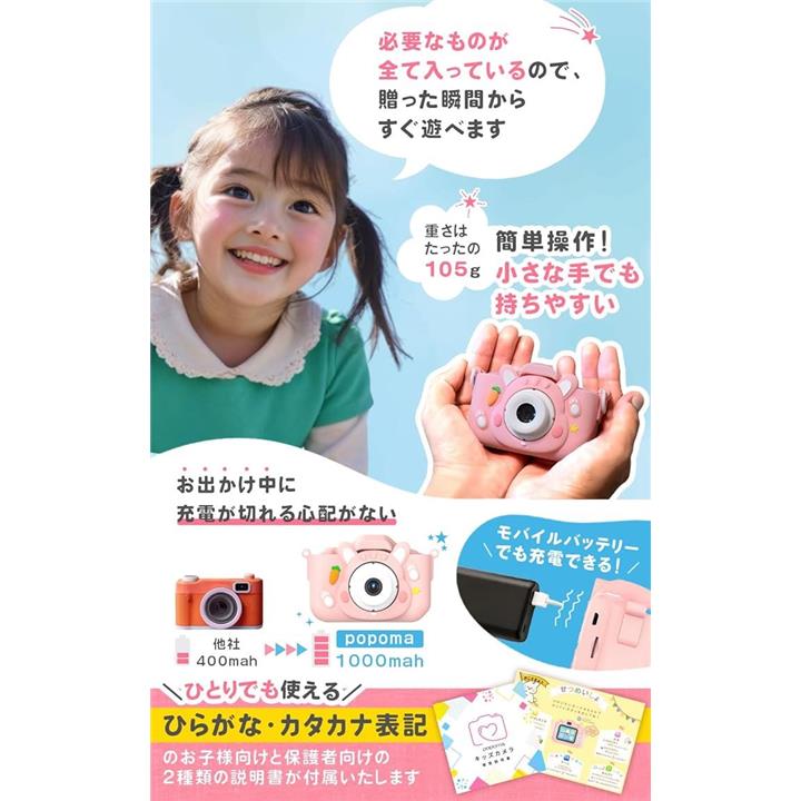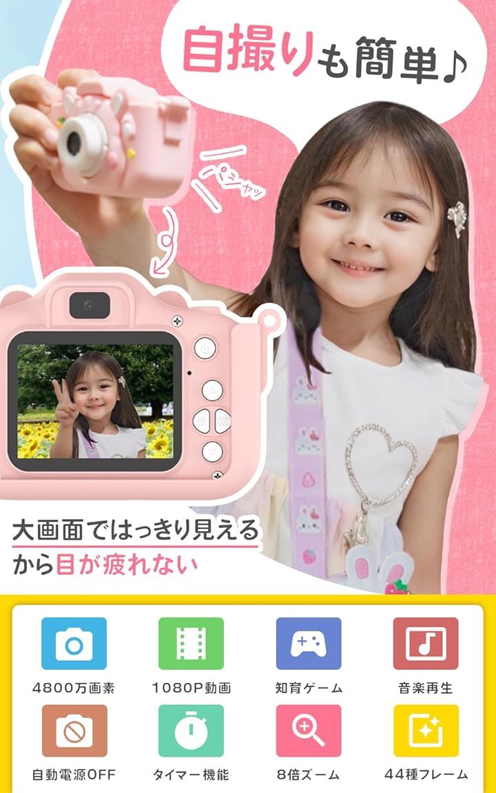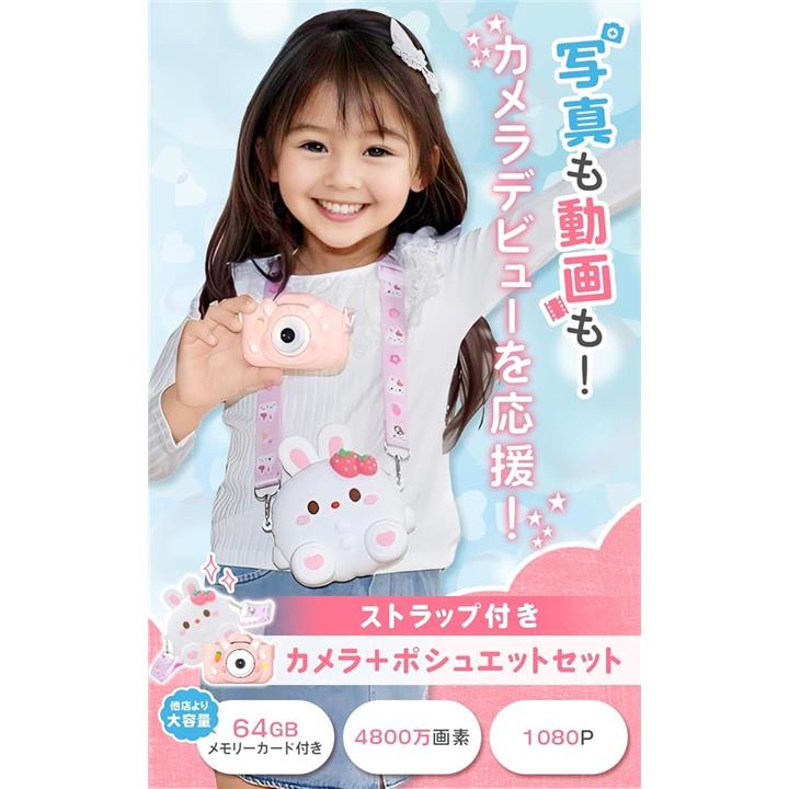 64GB ポシュエット付きキッズカメラ トイカメラ 子供用カメラ ゲーム機能 音楽プレーヤー インカメラ搭載 8倍ズーム プレゼント 女の子 男の子