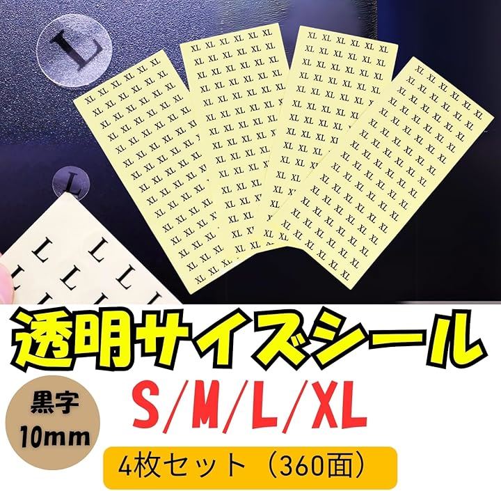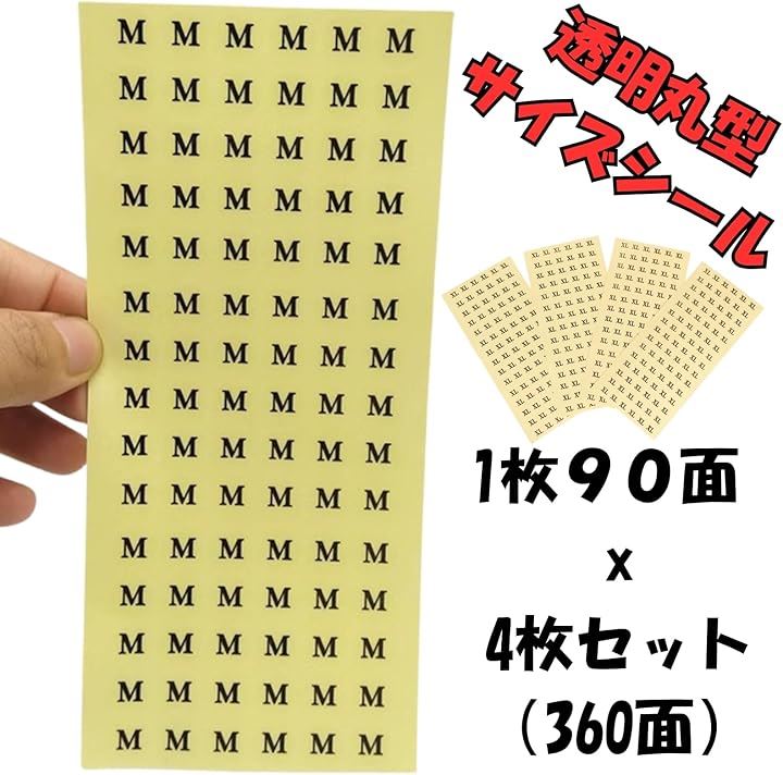サイズシール 業務用 アパレル 丸 透明 90面 4枚 10mm a204