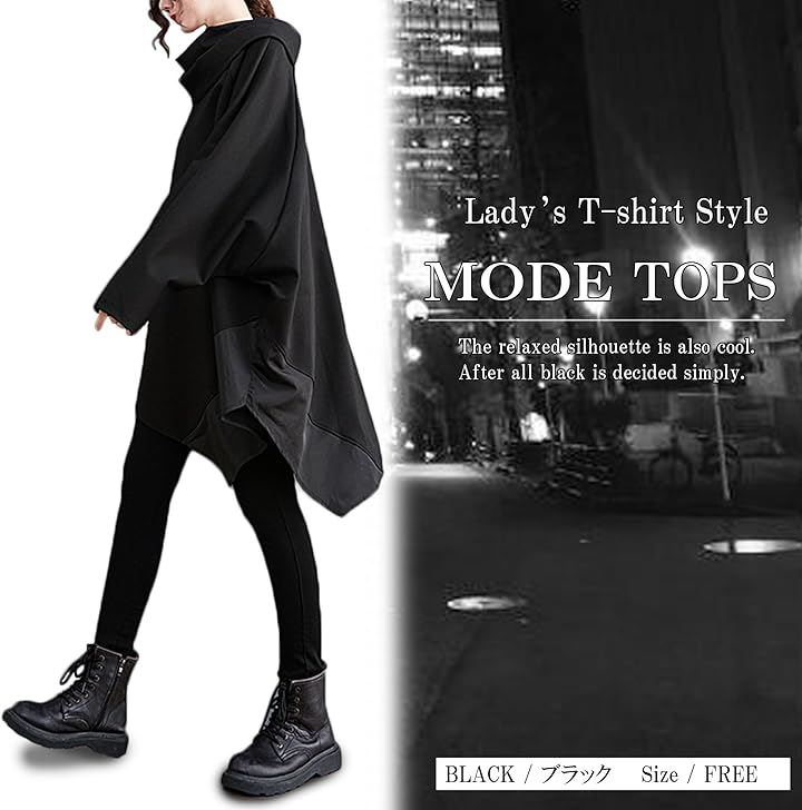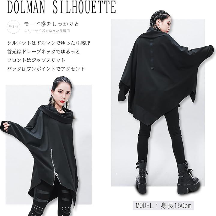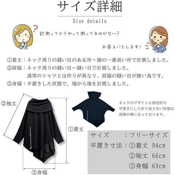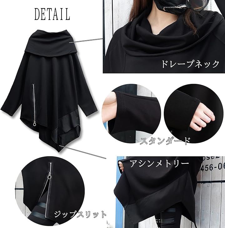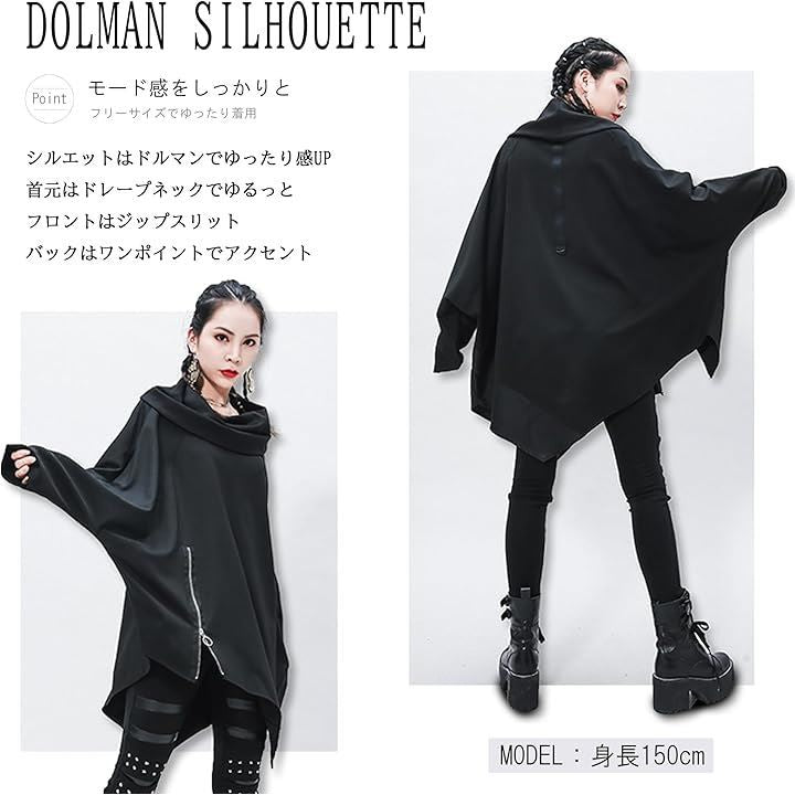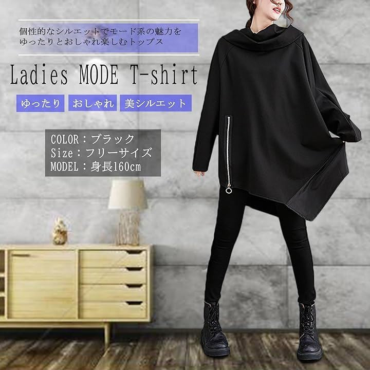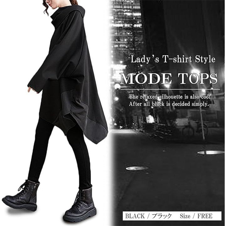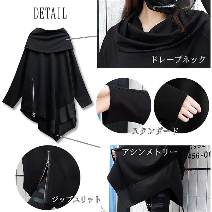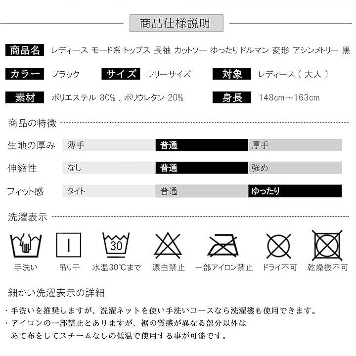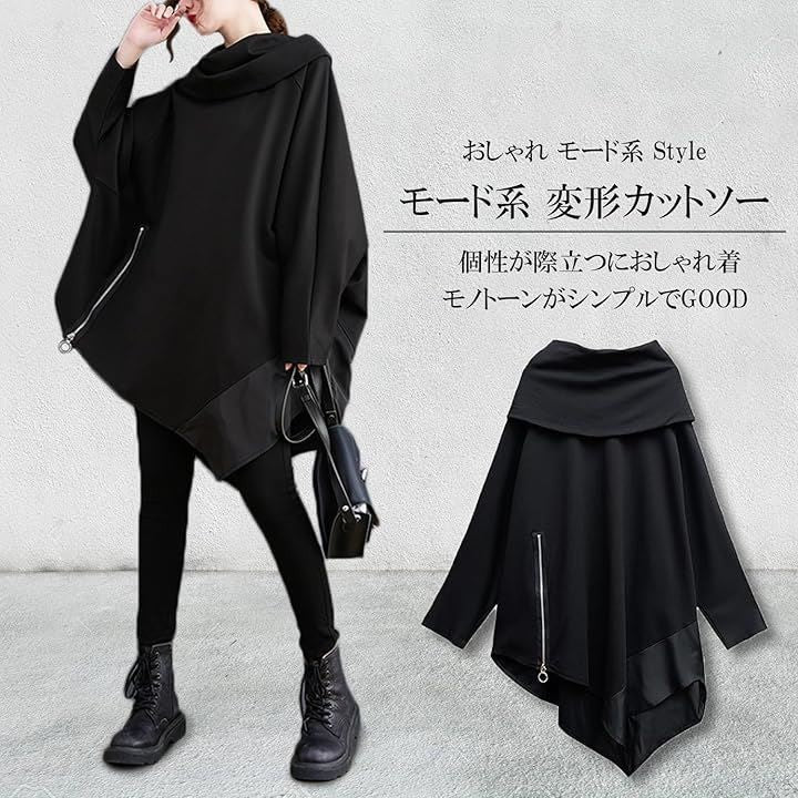 レディース モード系 トップス 長袖 カットソー ゆったり ドルマン 変形 アシンメトリー
