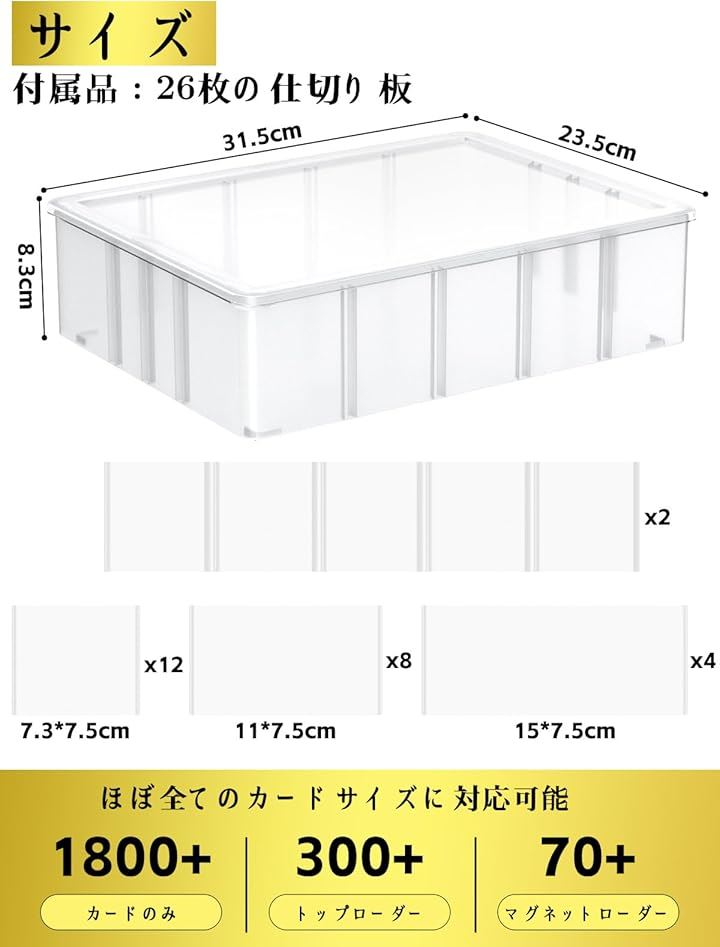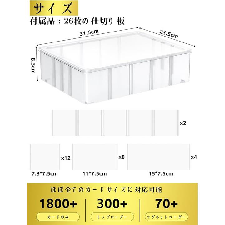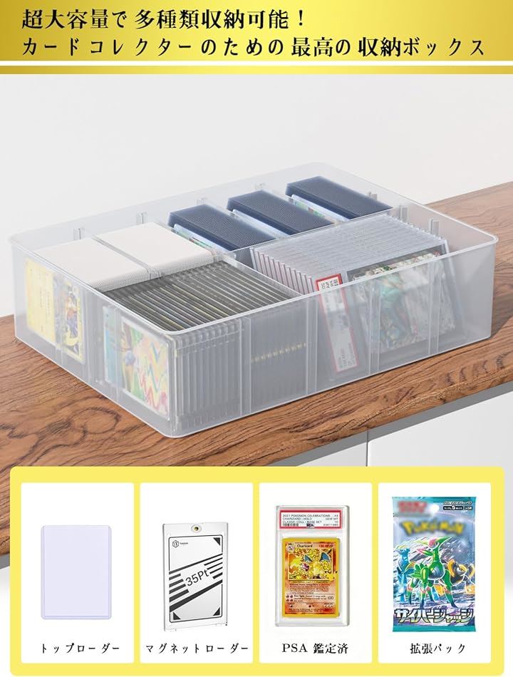 カードケース トレカ ストレージボックス トレカケース カードボックス 大容量 1800+枚収納 取り外し可能仕切り板付き 収納ケース カードストレージ ポケカ トップローダー サイドローダー 硬質ケース マグネットローダー