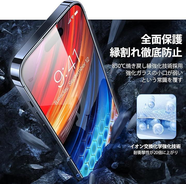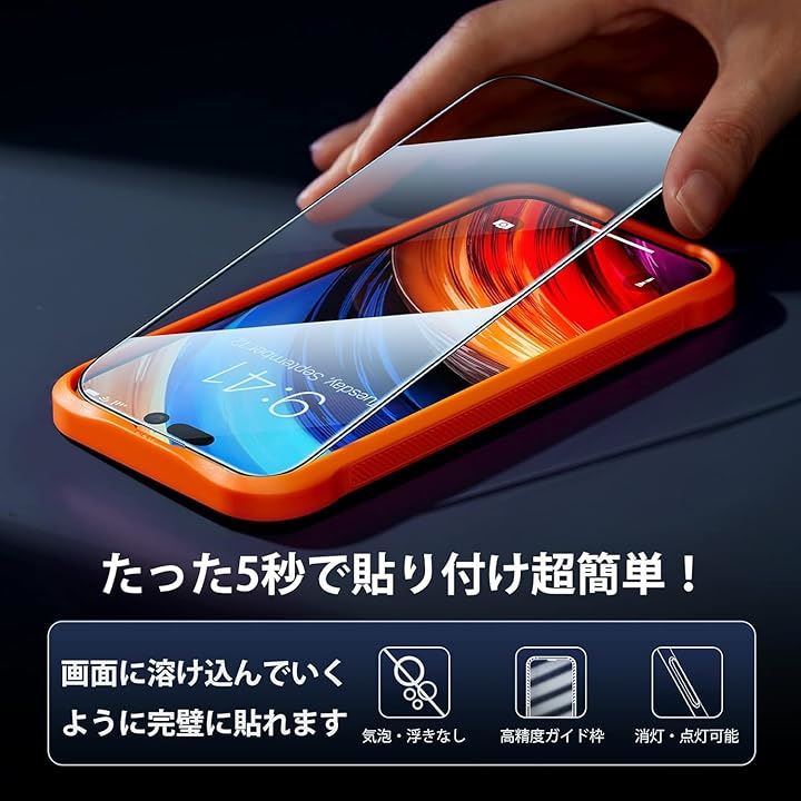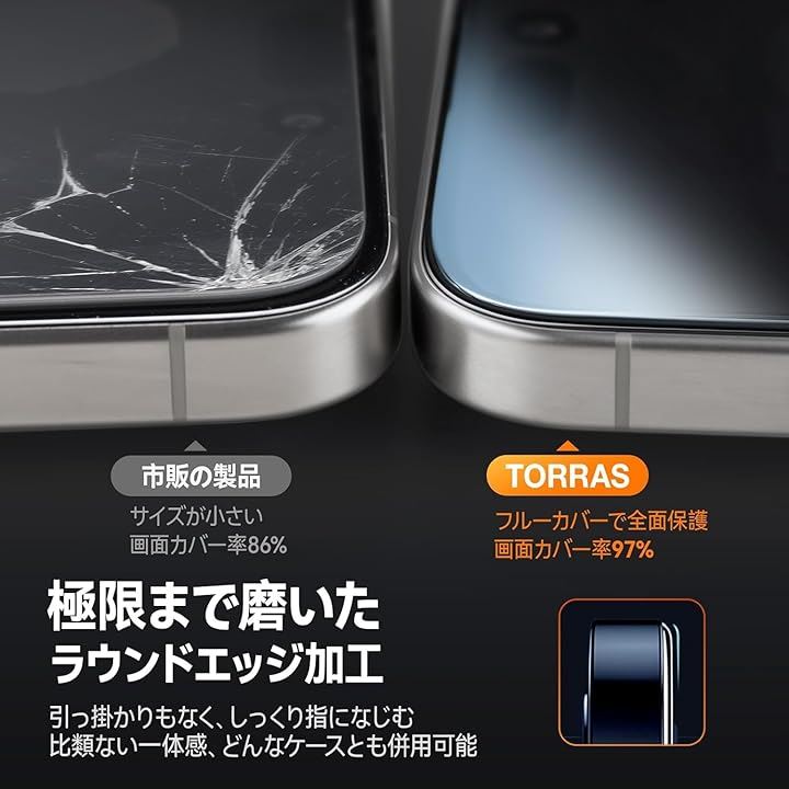 TORRASiPhone 15 / 14 pro 保護 ガラス フィルム 耐衝撃 画面保護シート 6.1 インチ 2枚セット アイフォン 14プロ 用 耐久性 ぴったり フィット 綺麗 クリア 強度 簡単 貼りやすい 全面保護