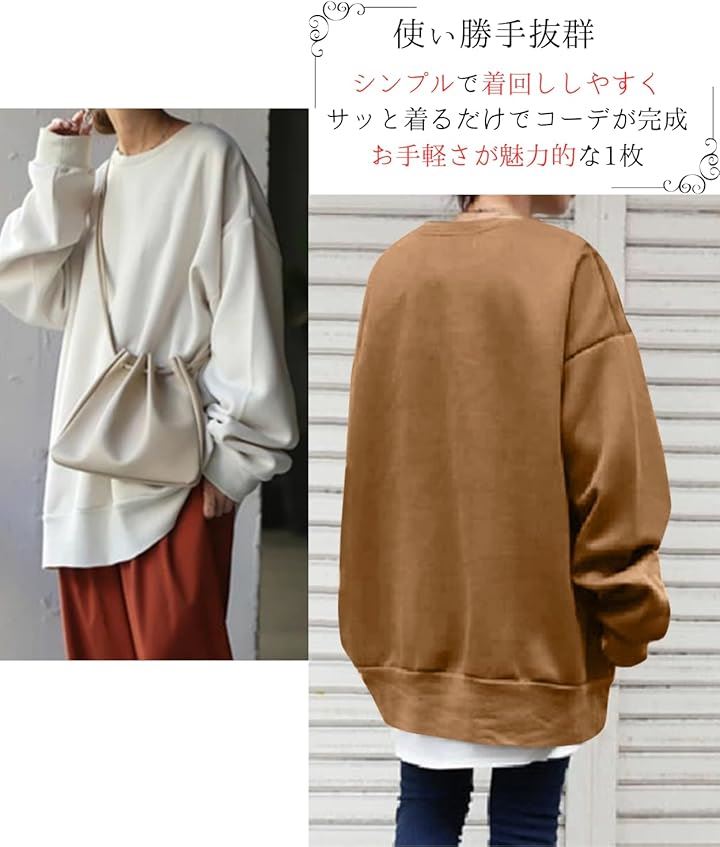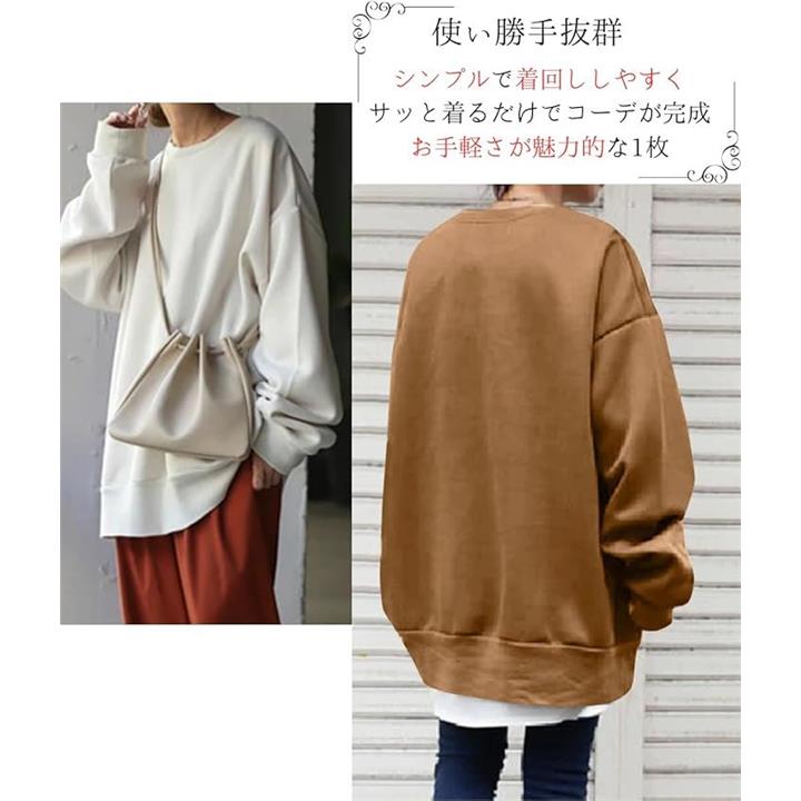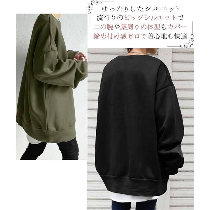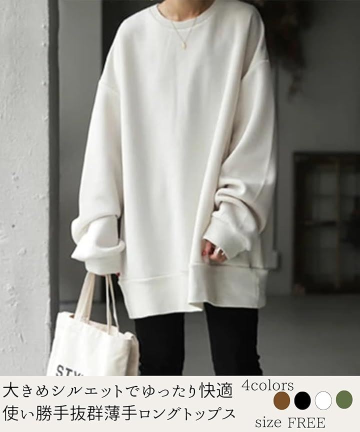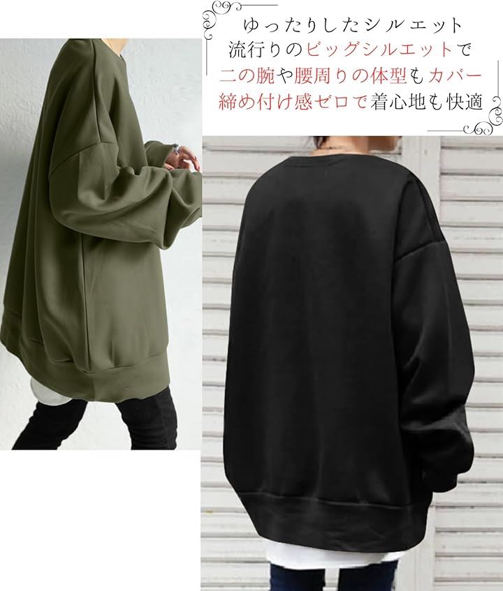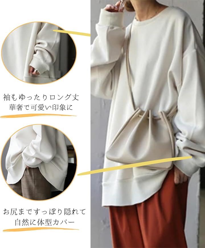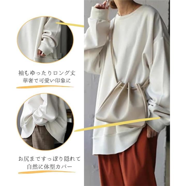 ゆったりシルエット トレーナー レディース 大きいサイズ オーバーサイズ ビッグシルエット 体型カバー トップス 長袖 薄手 春 秋 冬
