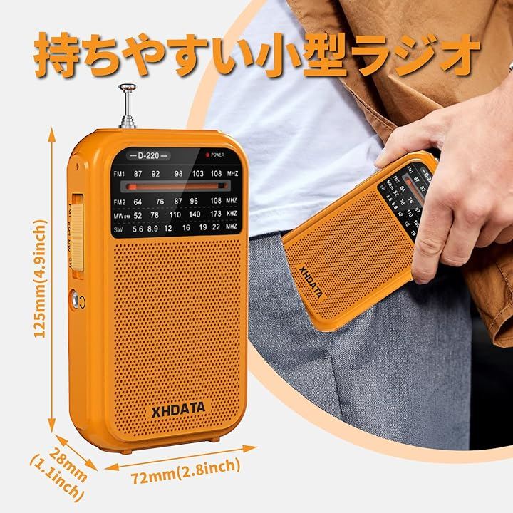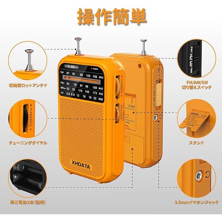 D220ラジオ 小型 AM/FM 短波ラジオ ワイドFM対応 携帯ラジオ ポケットラジオ ポータブルラジオ 高感度 大音量 単3形電池型 防災 操作簡単 日本語取扱説明書付き