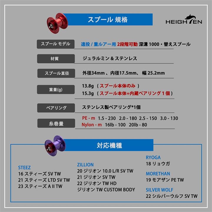 リール スプール 遠投/重ルアー用 2段階可動 ダイワ DAIWA ベイトリール 替えスプール ベアリング付き スティーズ/ジリオン/リョウガ/モアザン/シルバーウルフ
