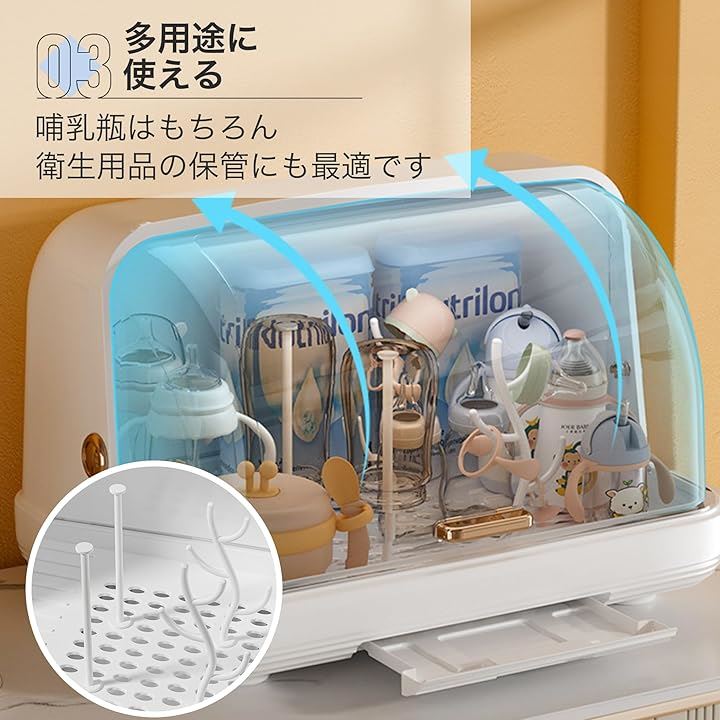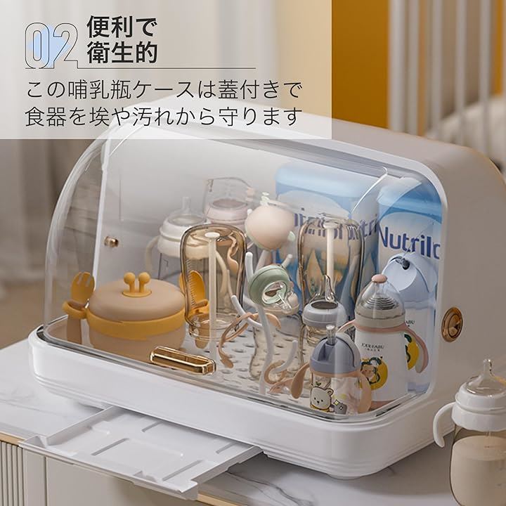 哺乳瓶ケース 乾燥 哺乳瓶スタンド 消毒ケース カバー付き 食器水切りかご ボトル収納ボックス 防水