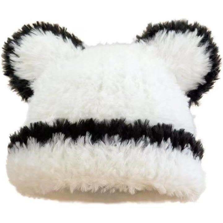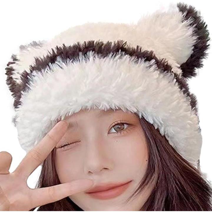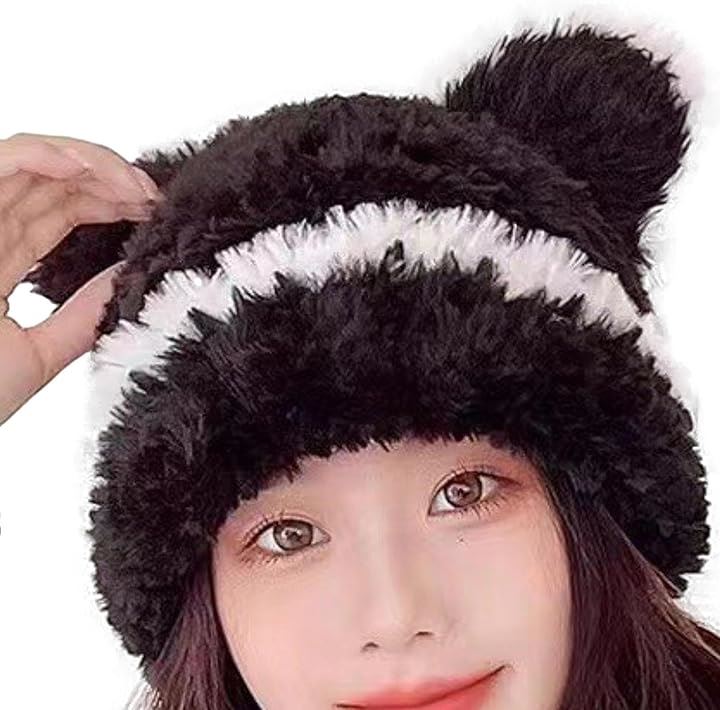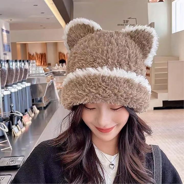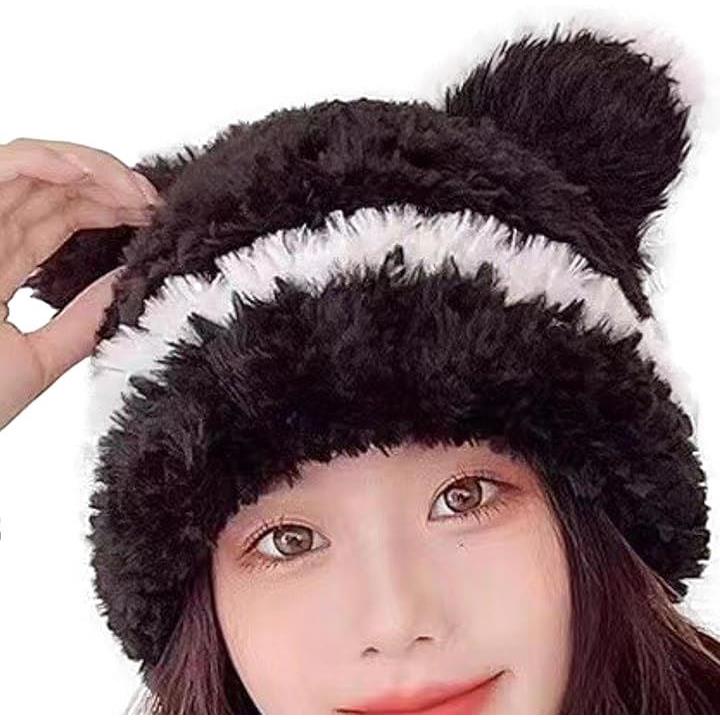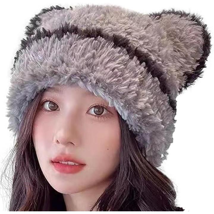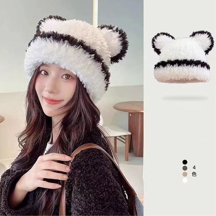 ニット帽 レディース クマの耳 熊耳 帽子 小顔効果 秋冬 フワフワ もこもこ フリース あったか かわいい耳付き ニットキャップ 防寒 保温 HAT046