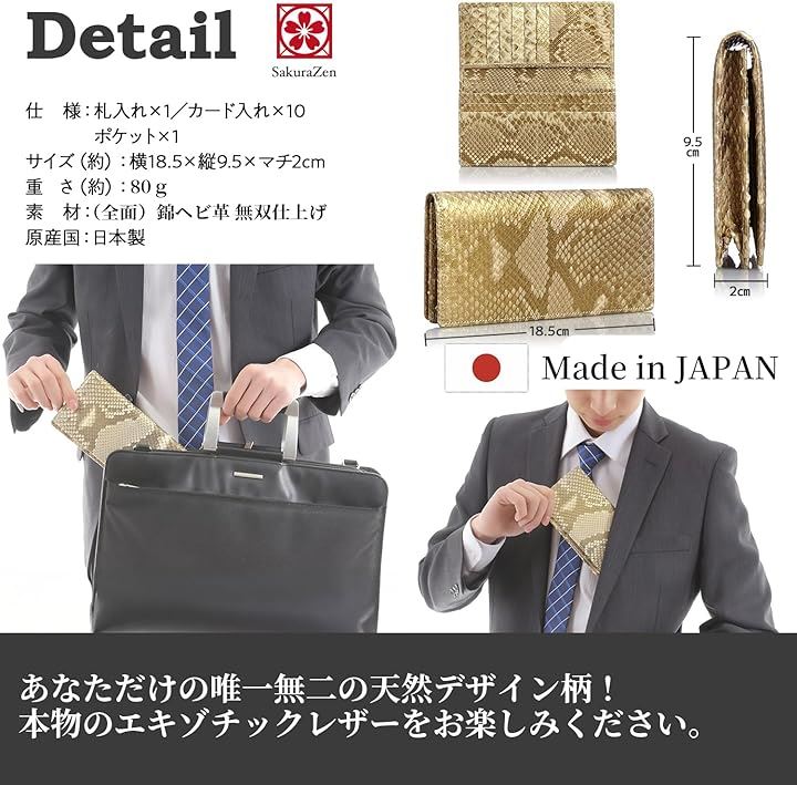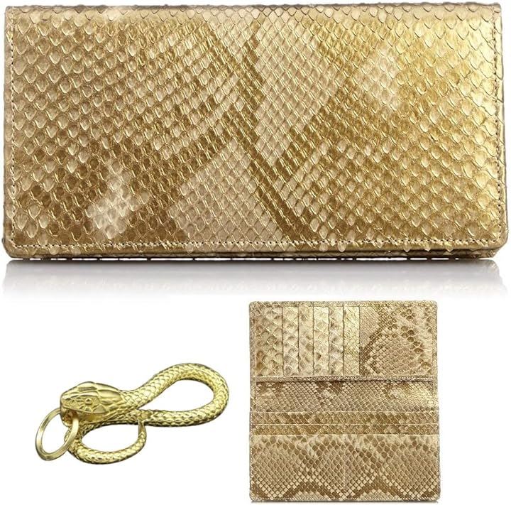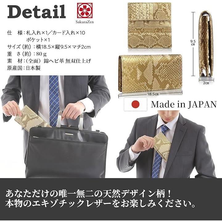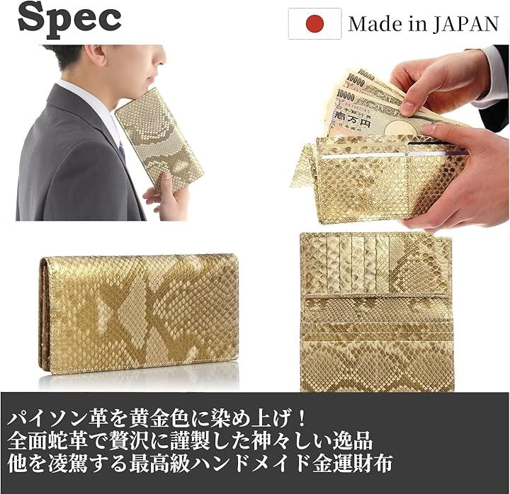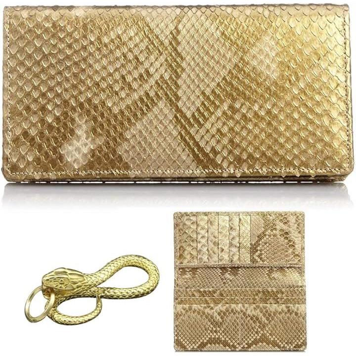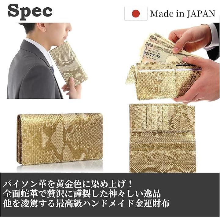 高級全面蛇革の”無双”仕上げ 金運財布 パイソン メンズ 長財布 エキゾチック レザーを使用した黄金蛇 蛇革/熟練革職人のハンドメイド品 日本製