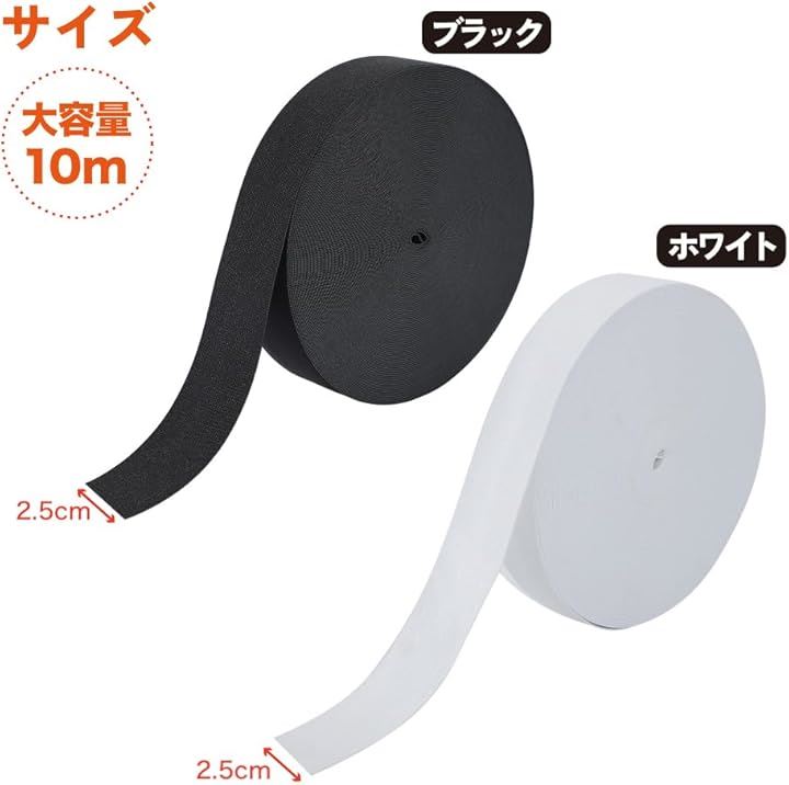 弾性バンド 平ゴム ゴムベルト 手芸 工作 手作り 縫製 弾性ゴム コールゴム ズボン 幅2.5cm 長さ10m ブラック