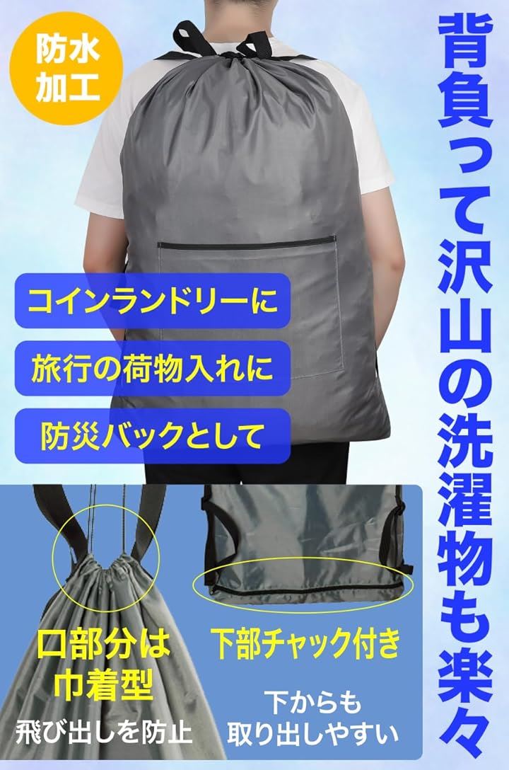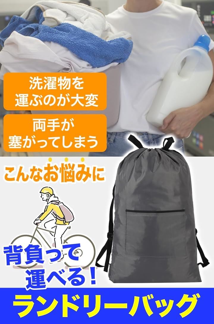 AllBright ランドリーバッグ 洗濯物入れ 袋 リュック 巾着 着替え 衣類 収納 汎用