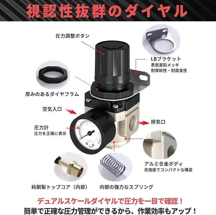 エアーレギュレーター ウォーターセパレーター エアフィルター コンプレッサー 圧力調整 水分除去