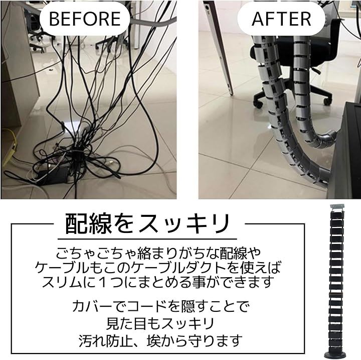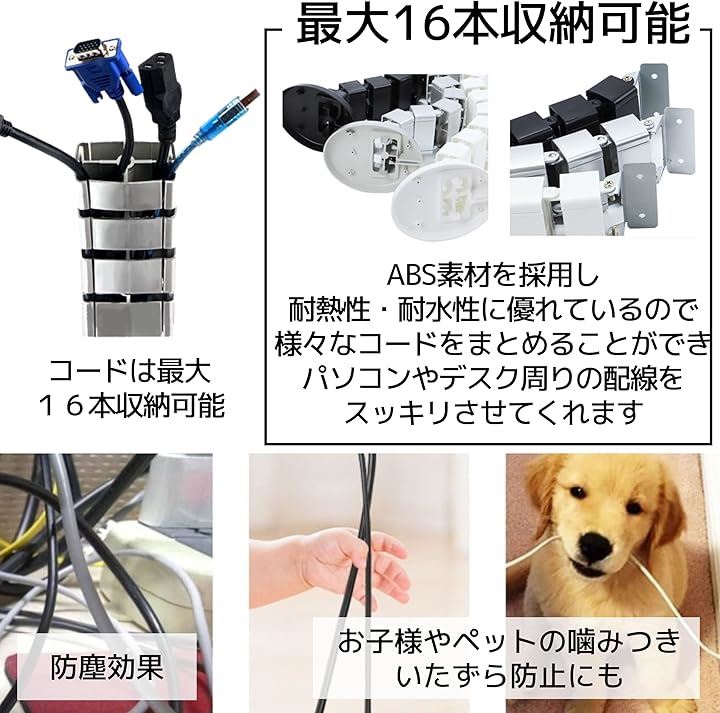 ケーブルダクト 配線ダクト ケーブルスリーブ 整理 コード 収納 80cm シルバー 角型 長さ 調節可能 オフィス デスク周り 噛みつき 防止 取付ネジ付き