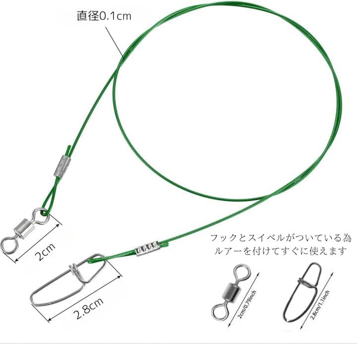 太刀魚 ワイヤー リーダー30本 50cm 仕掛け スイベル スナップ付き