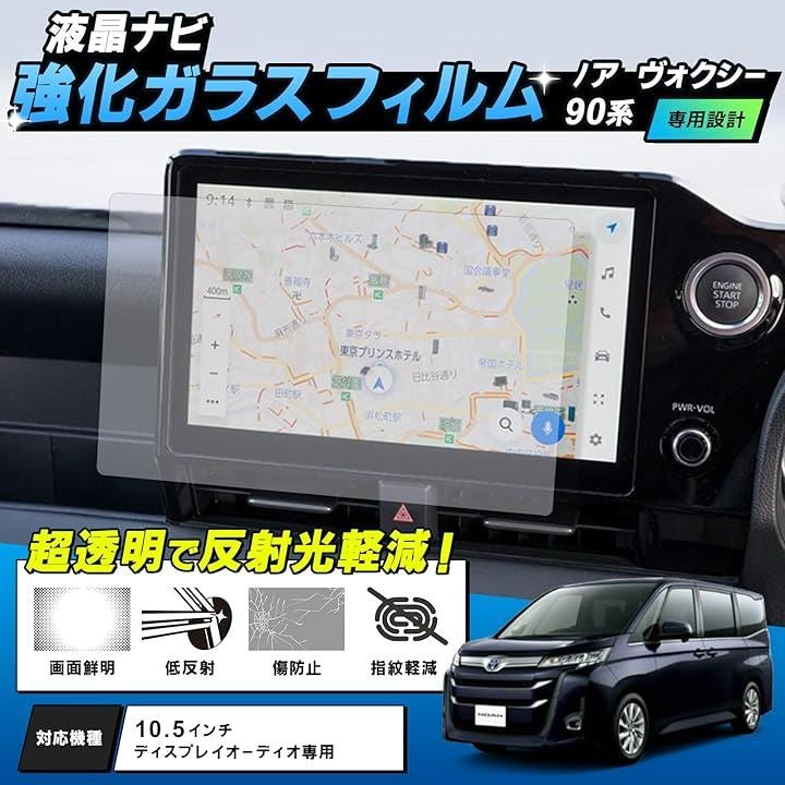 TOYOTA ノア ヴォクシー 90系 専用 カーナビ 液晶保護 強化ガラスフィルム 硬度9H 10.5インチ ディスプレイ 傷防止 アクセサリー