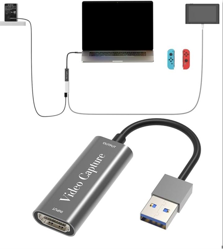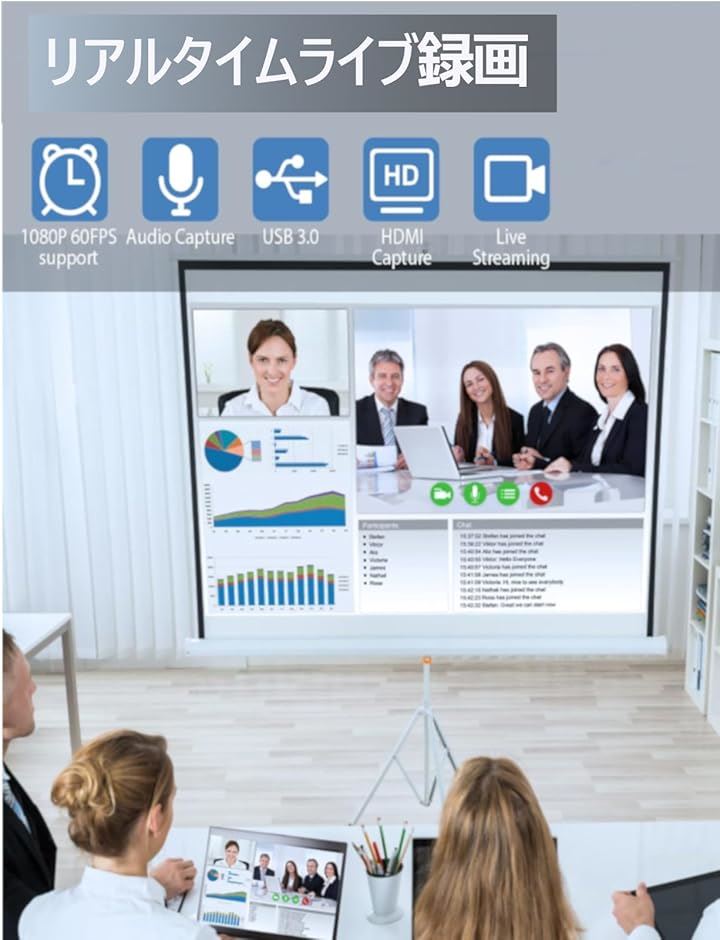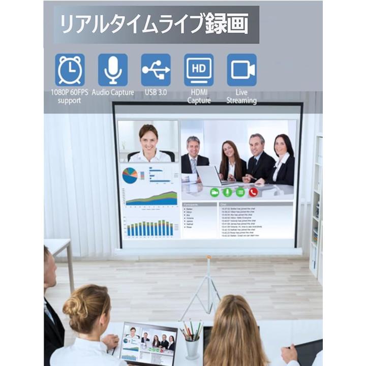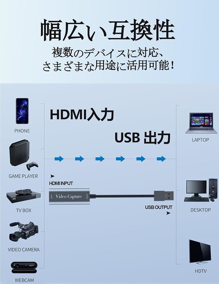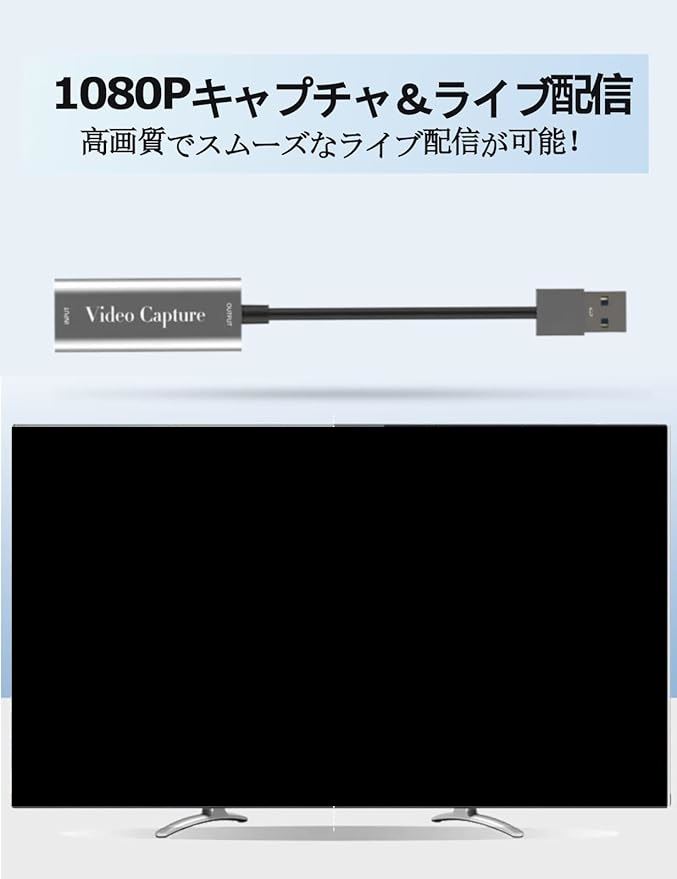 互換品 USB-A HDMI キャプチャー HD1080P 60Hz 録画/4K パススルー機能 ゲーム録画/ライブ配信/ビデオキャプチャー 電源不要 小型軽量・低遅延
