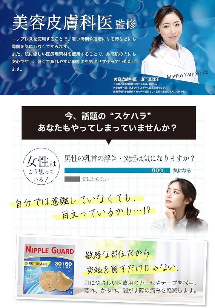 医師監修 NIPPLE GUARD ニップレス 肌に優しい 中央に不織布面 スポーツ 透け防止 擦れ対策 胸部ブレース