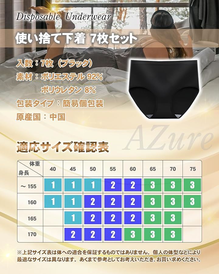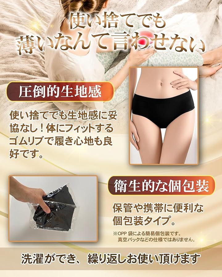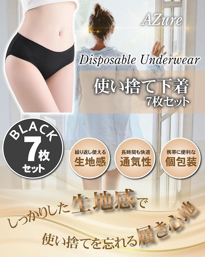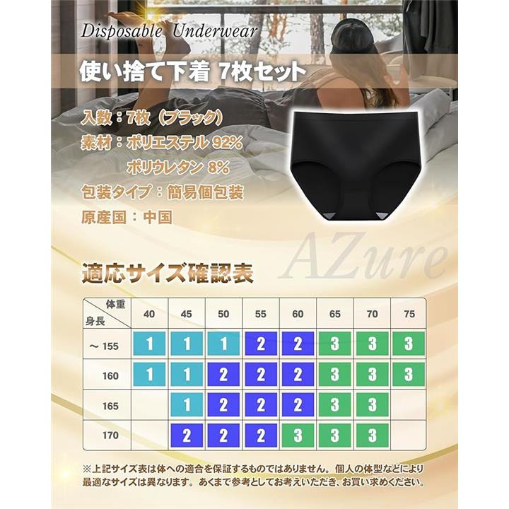 使い捨てパンツ レディース 7枚セット 黒 個包装 女性用 下着 ショーツ 旅行 入院