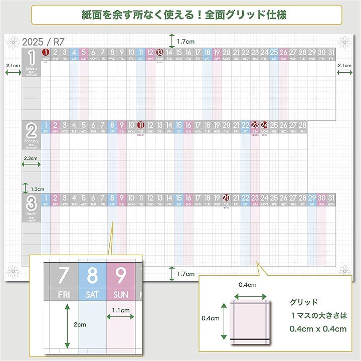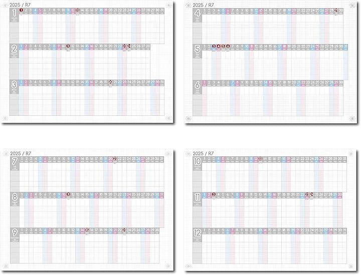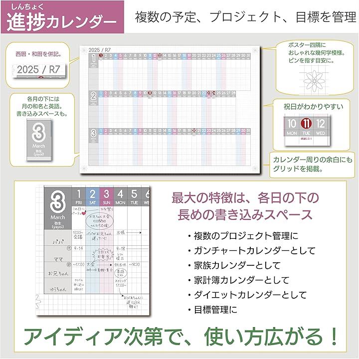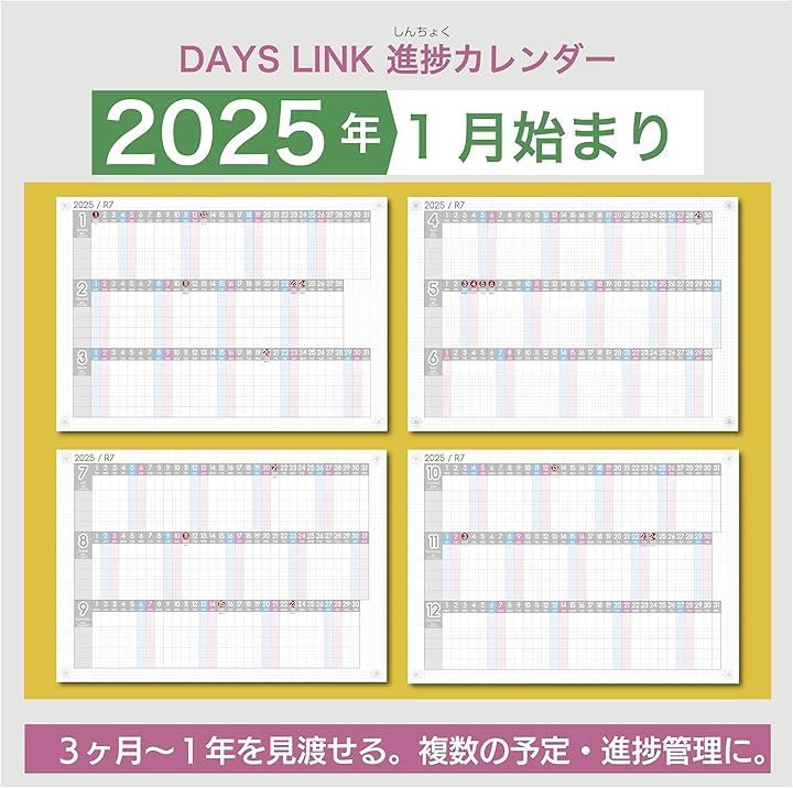進捗カレンダー ガンチャート 家族カレンダー 2025年 1月始まり 令和7年 壁掛け A3