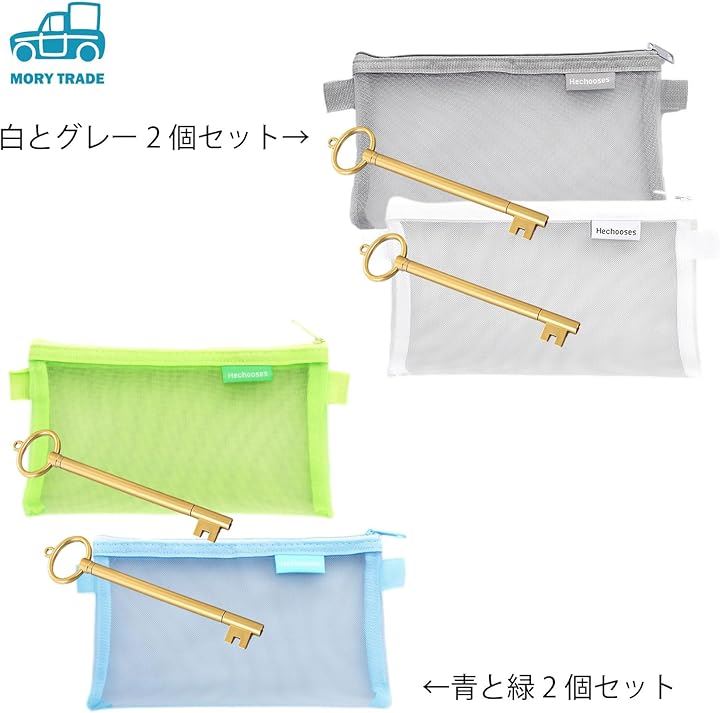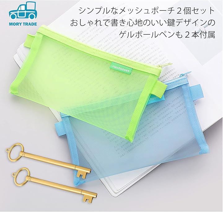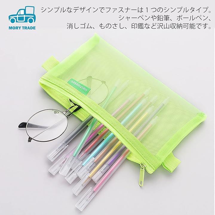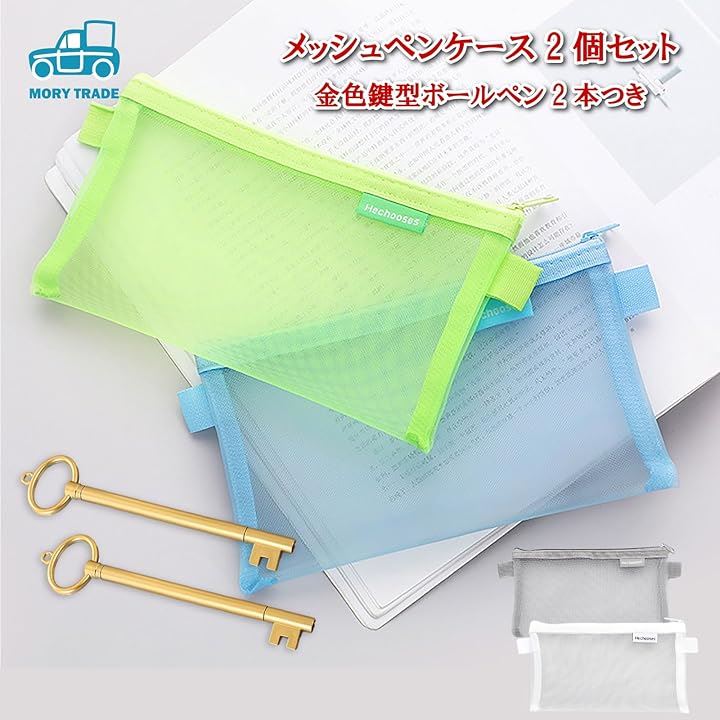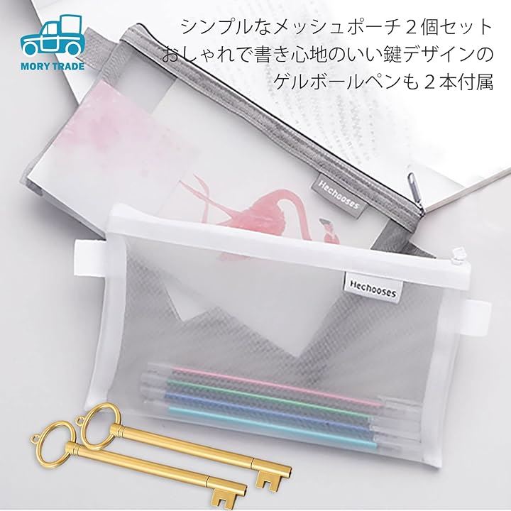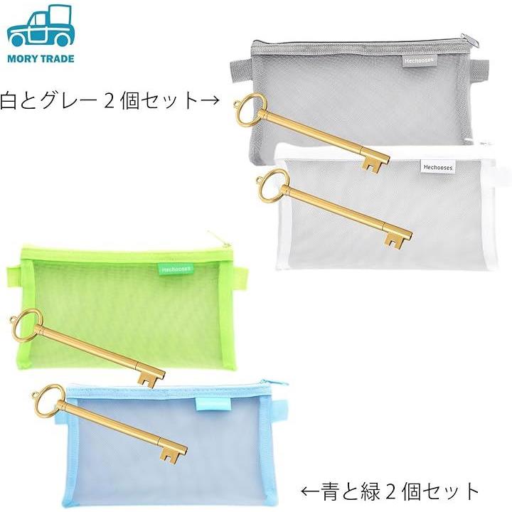 morytrade ペンケース 2個セット メッシュ シンプル ポーチ 文房具 収納