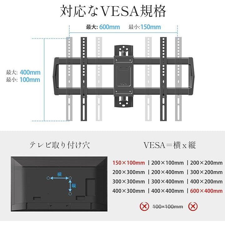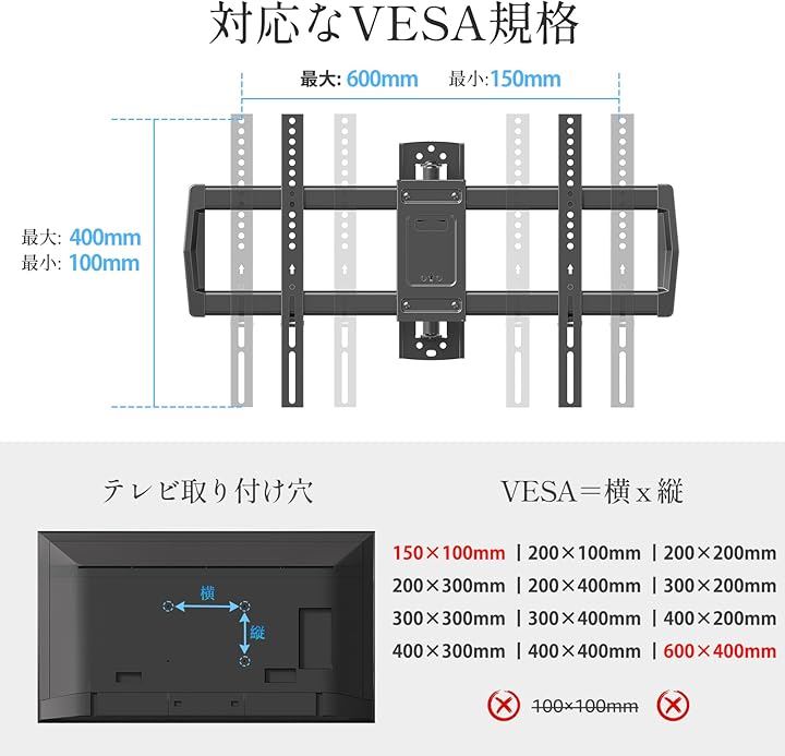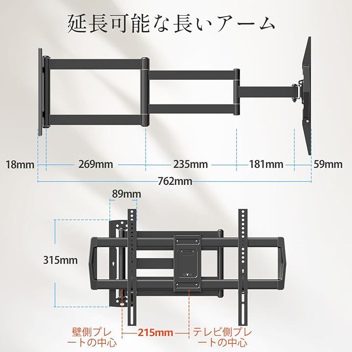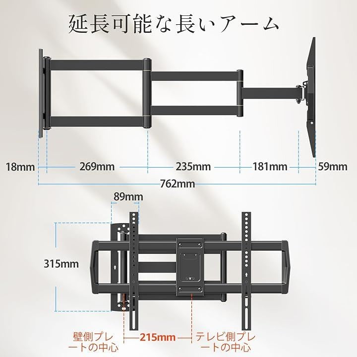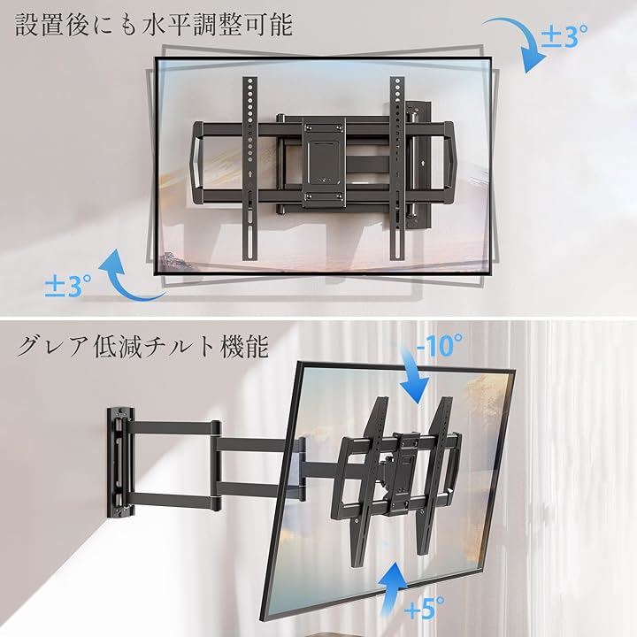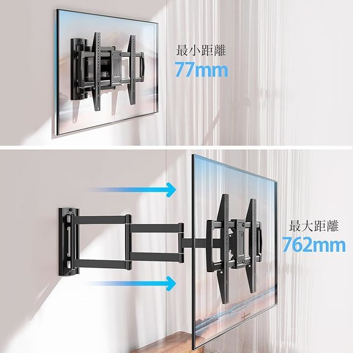 テレビ壁掛け金具 大型 テレビアーム 42~75インチ アーム延長 耐荷重35kg 移動式 tv壁掛け 上下&左右&前後調節可能 VESA最大400x400mm対応 フルモーション式 かべかけ金具