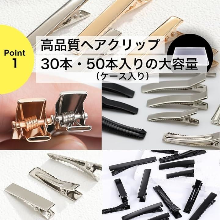 ヘアクリップ 約50個入り ヘアピン 曲がりやっとこピン 髪留め 金具 ヘアアクセサリー パーツ
