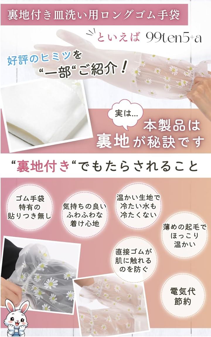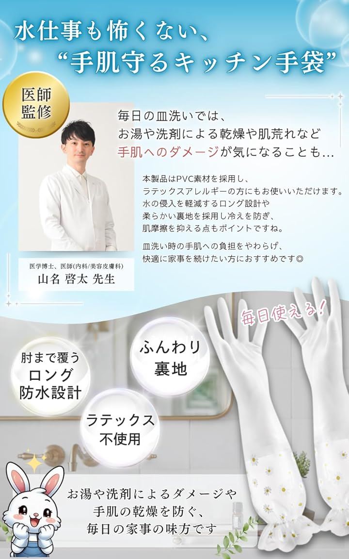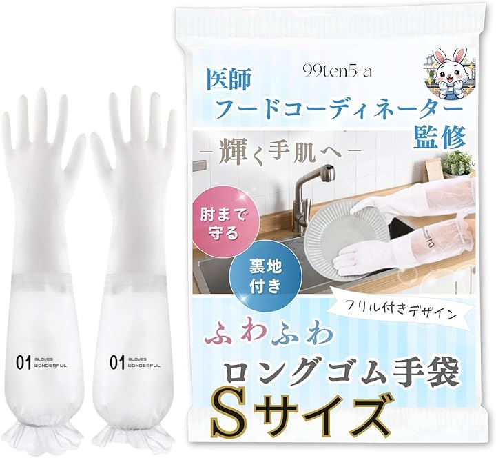 医師&フードコーディネーター監修 ゴム手袋 キッチン 食器洗い 感動レベルの裏地付き 肘まで防水 女性用 上質な時間をあなたへ