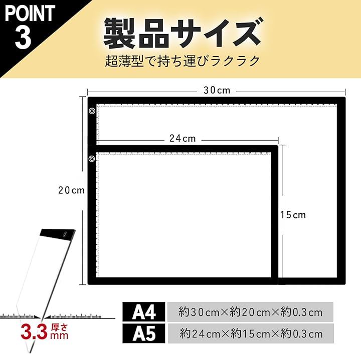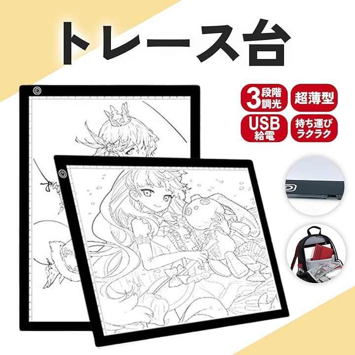 トレース台 LED ライト USB 電源 3.3mm 3段階 ノート 照明 トレーサー アニメ デザイン イラスト マンガ アート