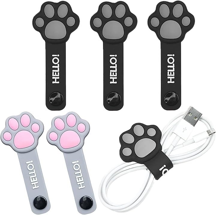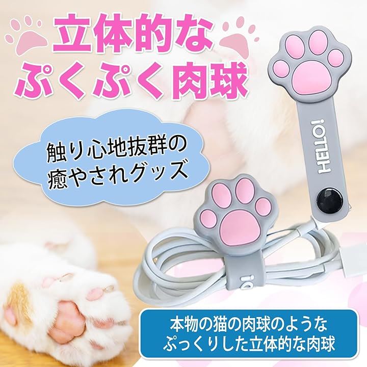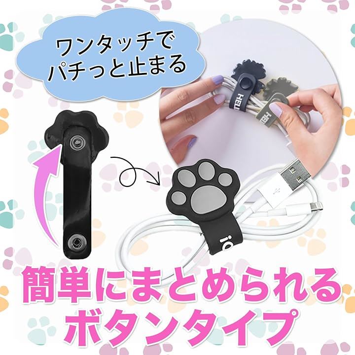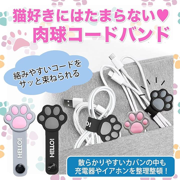 コードホルダー 5個入り 肉球 デスク周り 便利グッズ コードまとめる 配線 整理 コードクリップ ケーブルクリップ イヤホン 収納