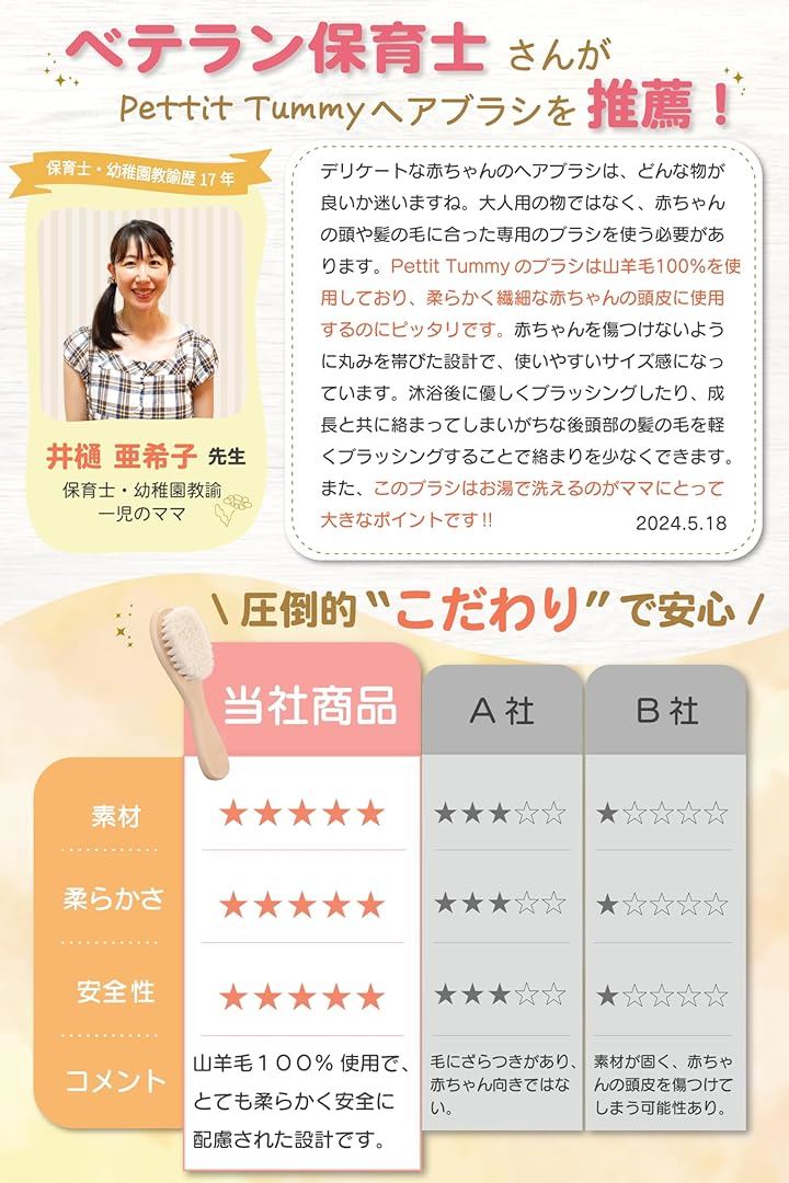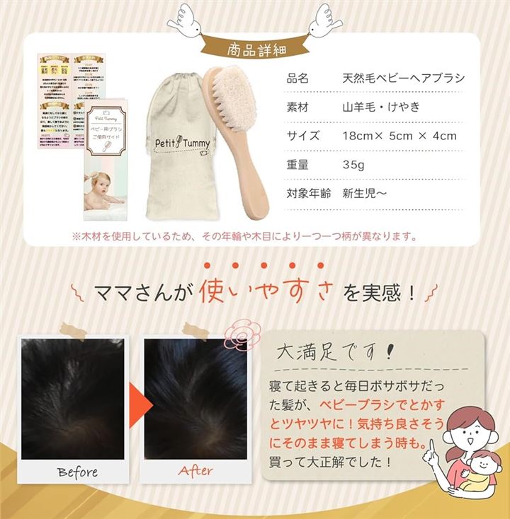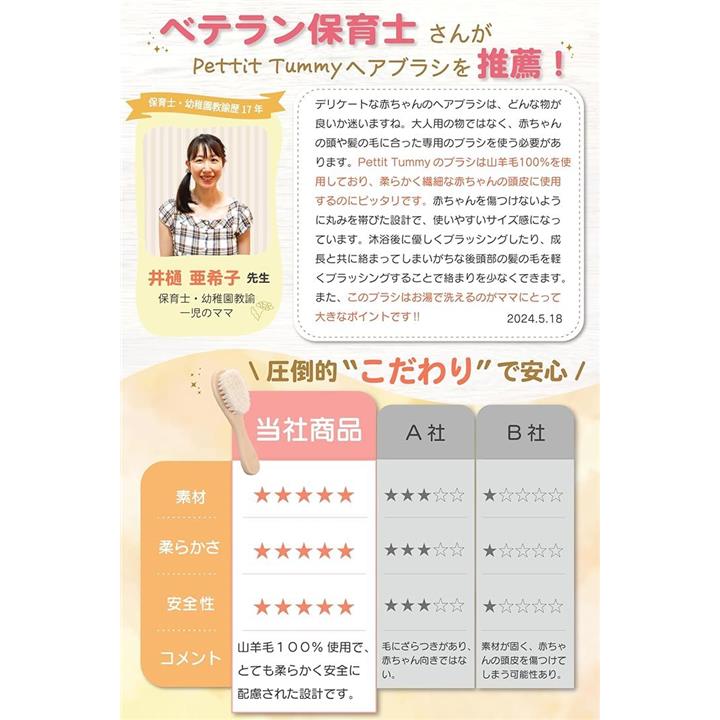 美容師監修極上ふんわりベビーブラシ 山羊毛 ふんわり柔らか 新生児 赤ちゃん 出産祝い ギフト 頭皮 ケア サラサラ 静電気防止 天然木 木製 天然素材 ホルムアルデヒド検査済 保育士推薦