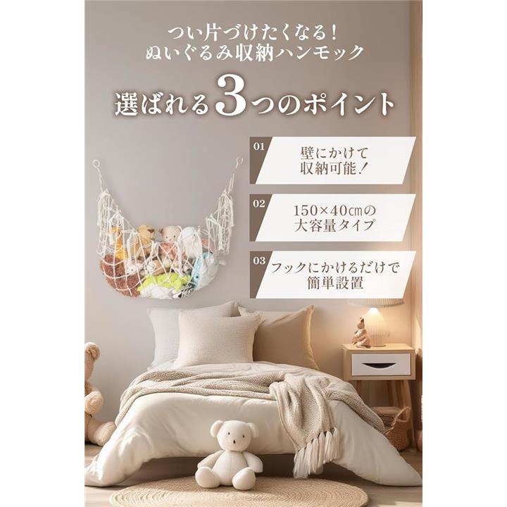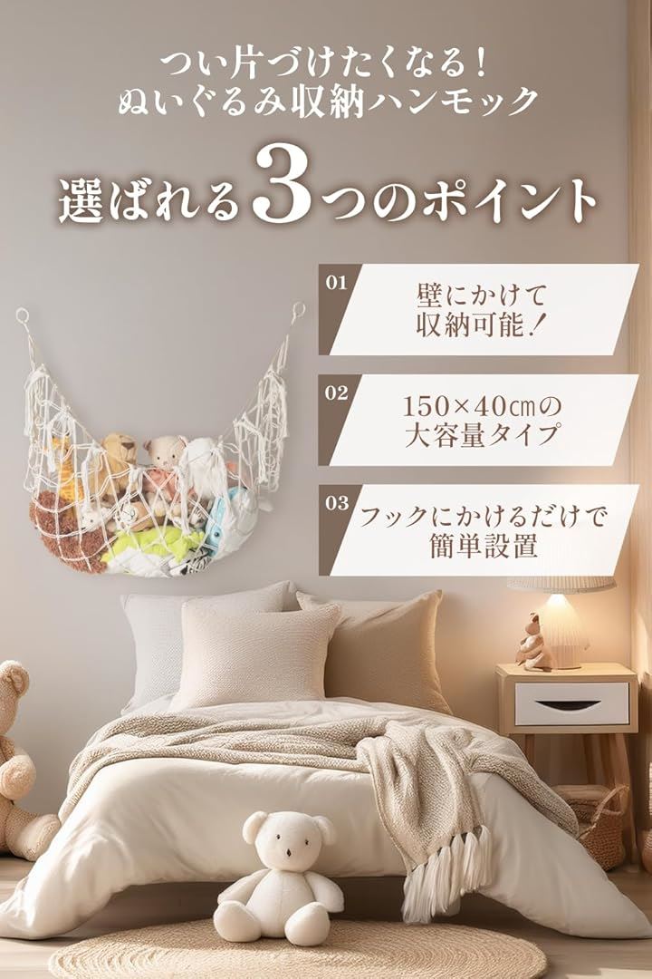 ぬいぐるみ収納 ハンモックタイプ収納コーディネーター監修空中収納でお部屋スッキリ